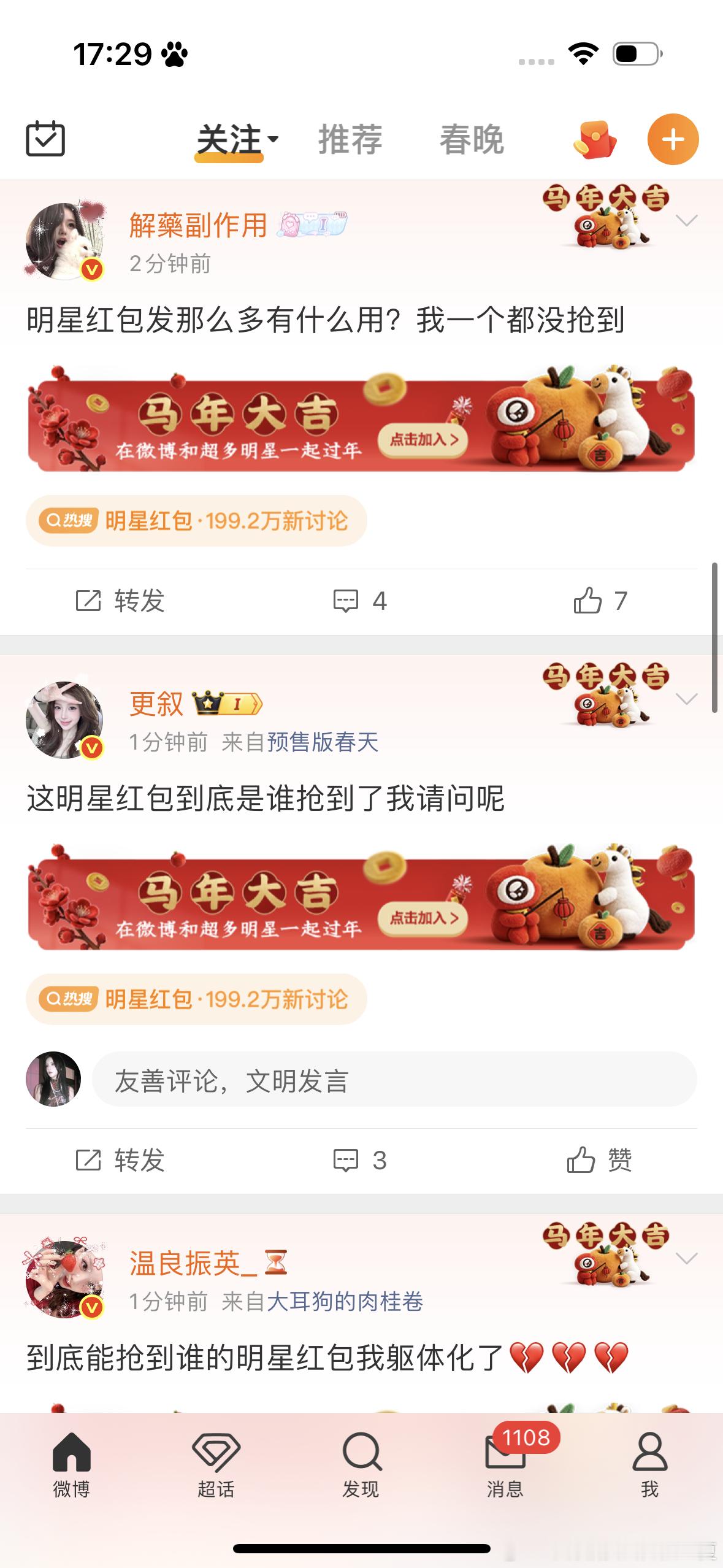 笑死了主页现状:不过我也好奇到底谁抢到了明星红包