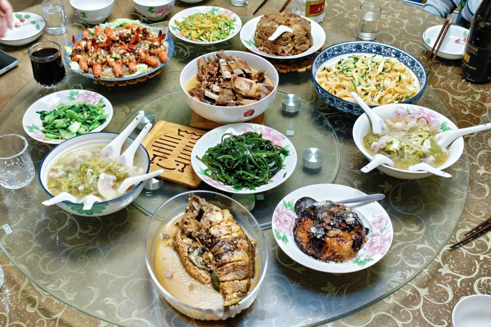 今晚的年夜饭主打省事+不剩菜,十菜一汤,肉菜大幅压缩,再来几个陕西特色,9个人吃刚刚好