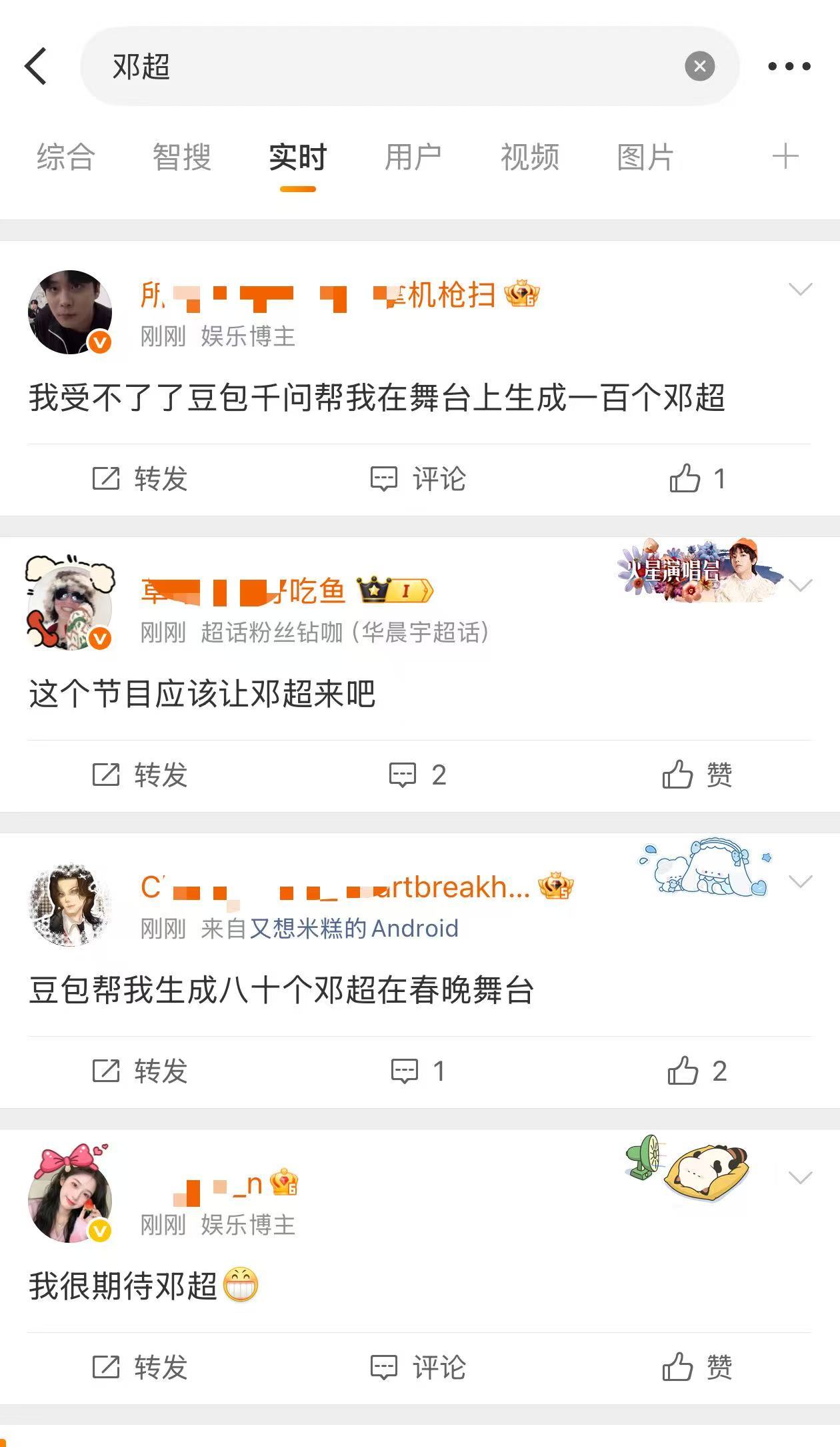 邓超出场呼声好高 春晚刚开始不久发现网友对邓超的呼声好高好高!这就是国民度这就是超哥口碑吧这无与伦比的好感度也是顶级了!期待超哥稍后的独唱🥳我在春晚好想邓超🎉🎉春节刷到宝了