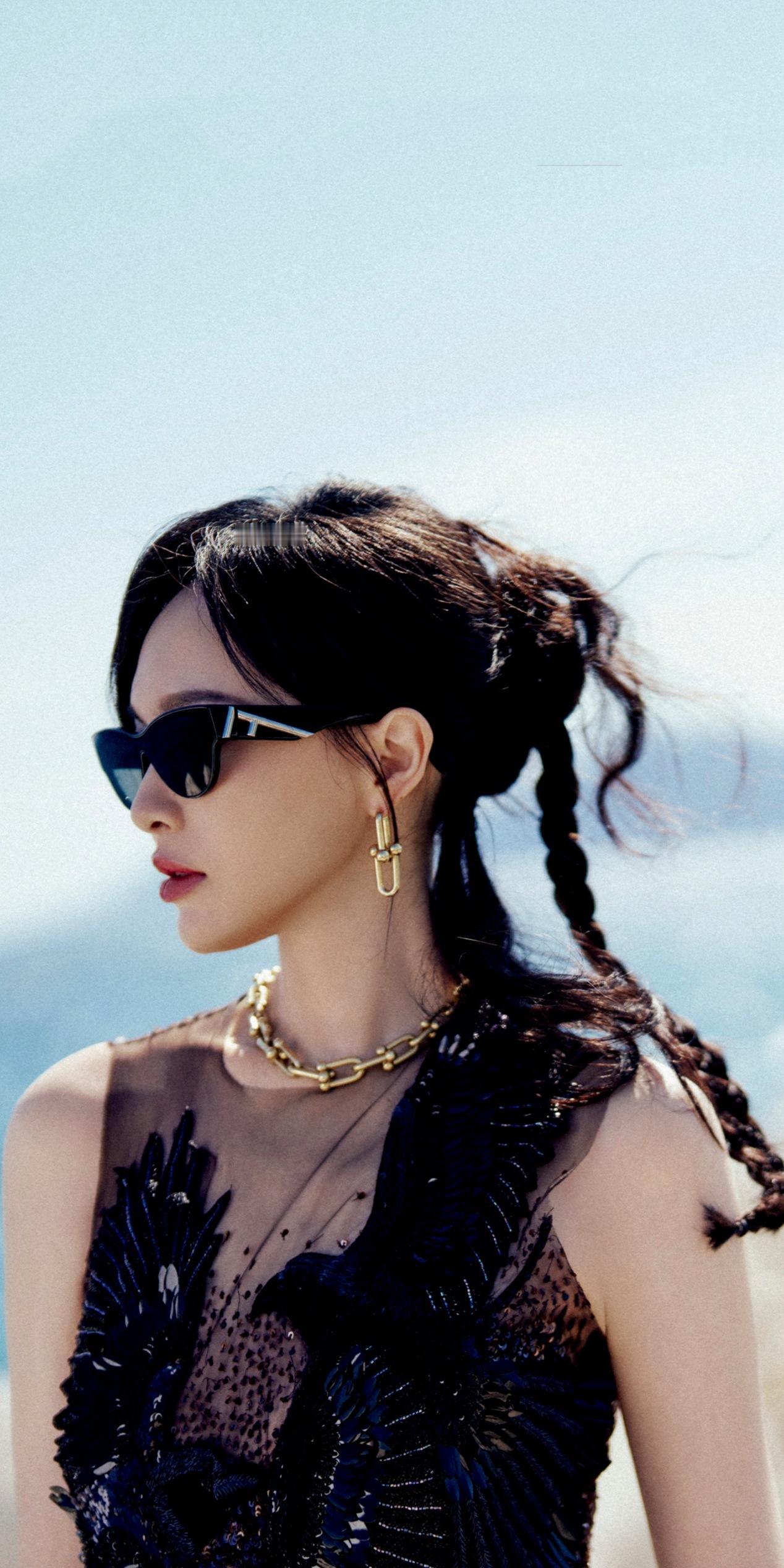 唐嫣戛纳电影节穿搭壁纸:黑色蕾丝裙大长腿。唐嫣