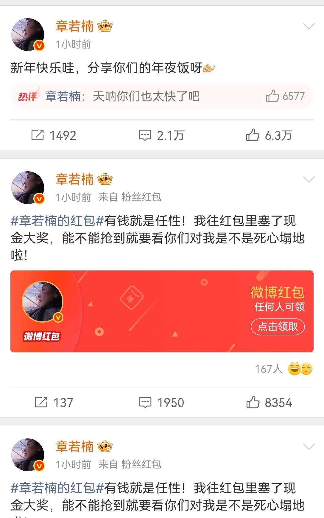 [送心]吃瓜群众必须感谢李一桐[飞吻] [6]桐(雪)姐[玫瑰]带起了“发大红包”的新“节奏”——鞠姐跟进后,上春晚的白鹿、田曦薇、章若楠等纷纷“慷慨”一把[可怜]但,我缺乏预见性,动作慢了[捂脸][捂脸][捂脸]
