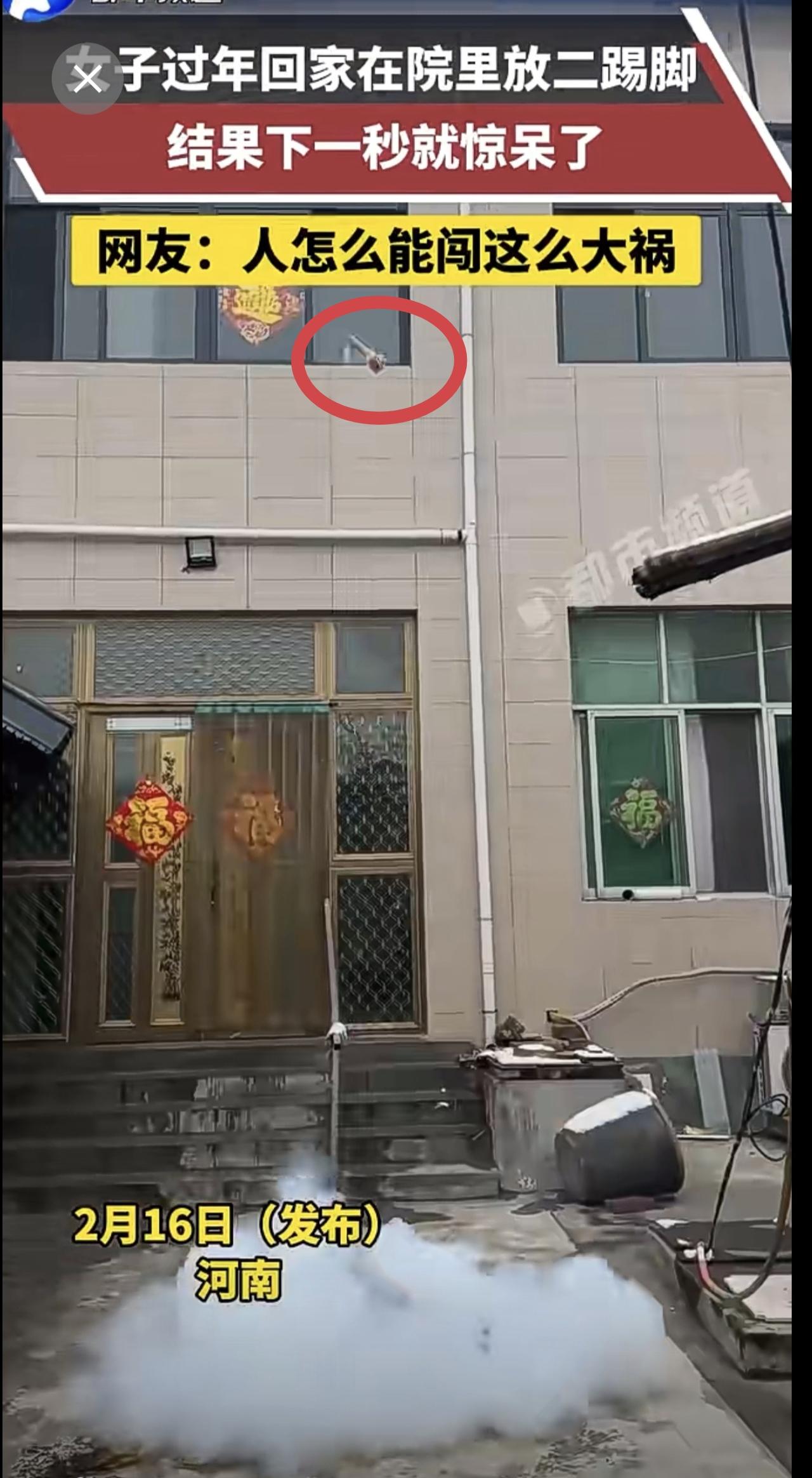女子过年回家在院里放二踢脚,结果下一秒就惊呆了。网友:人怎么能闯这么大祸[捂脸]