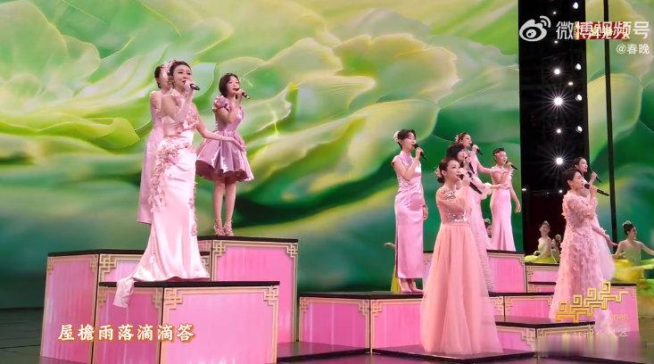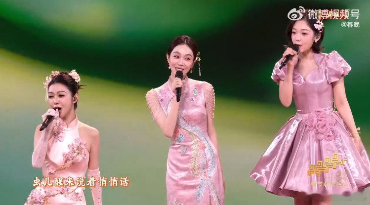 姜妍 国泰民安的美 姜妍央视春晚《立春》的粉裙造型太赞!在翠绿舞美衬托下,春意盈