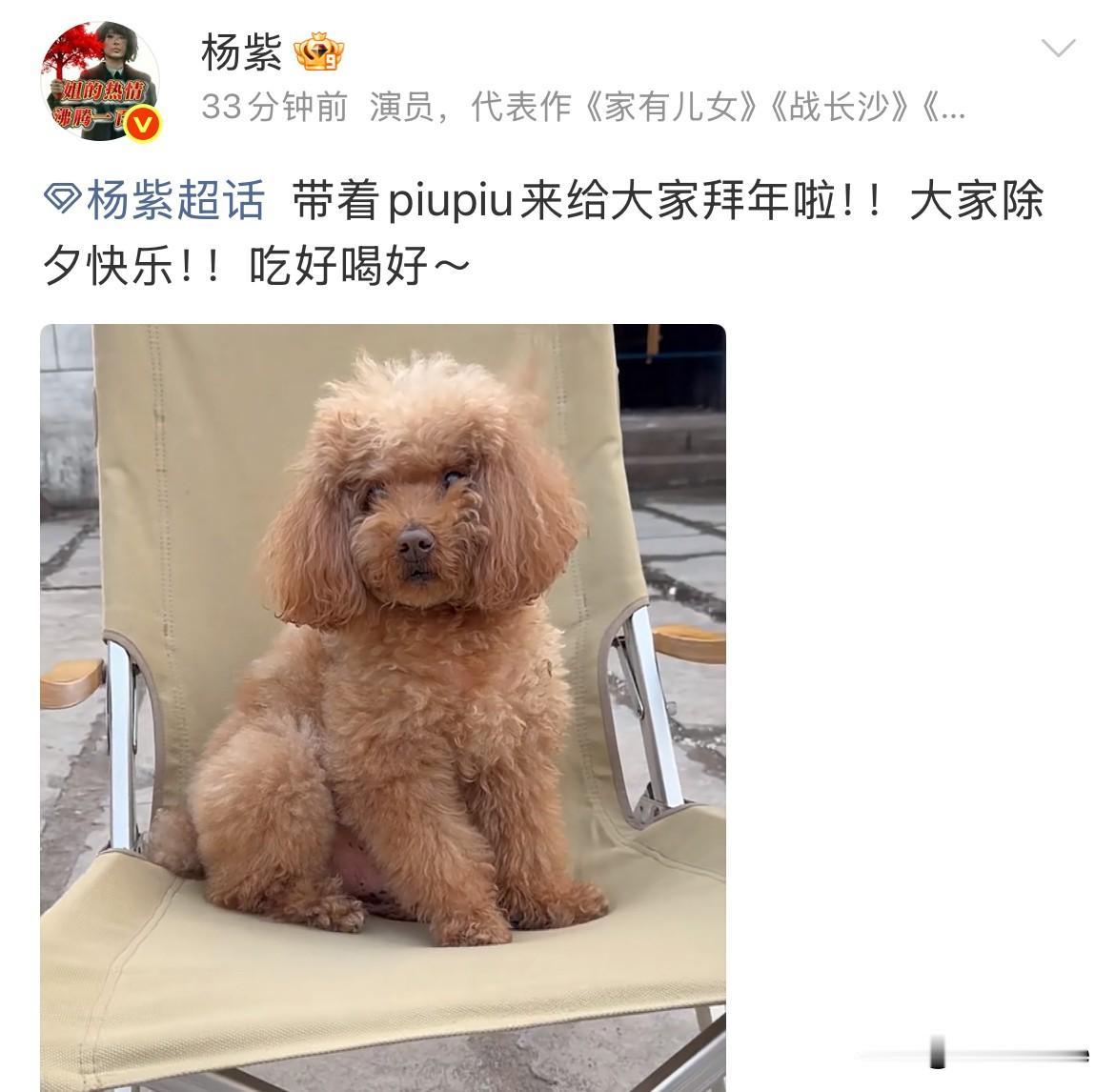 2月16日,杨紫带piupiu来给大家拜年啦 穿红衣分享在《玉兰花开君再来》剧组过年日常,寒冬穿着短袖草帽扮可爱的董竹君,着实太可爱了点,看到很多人关注piupiu状态,piupiu看上去挺好的,就是因为年纪大了,眼神飘忽,今年杨紫频频带piupiu进组,参加活动,分享日常,能看出她的依恋与不舍