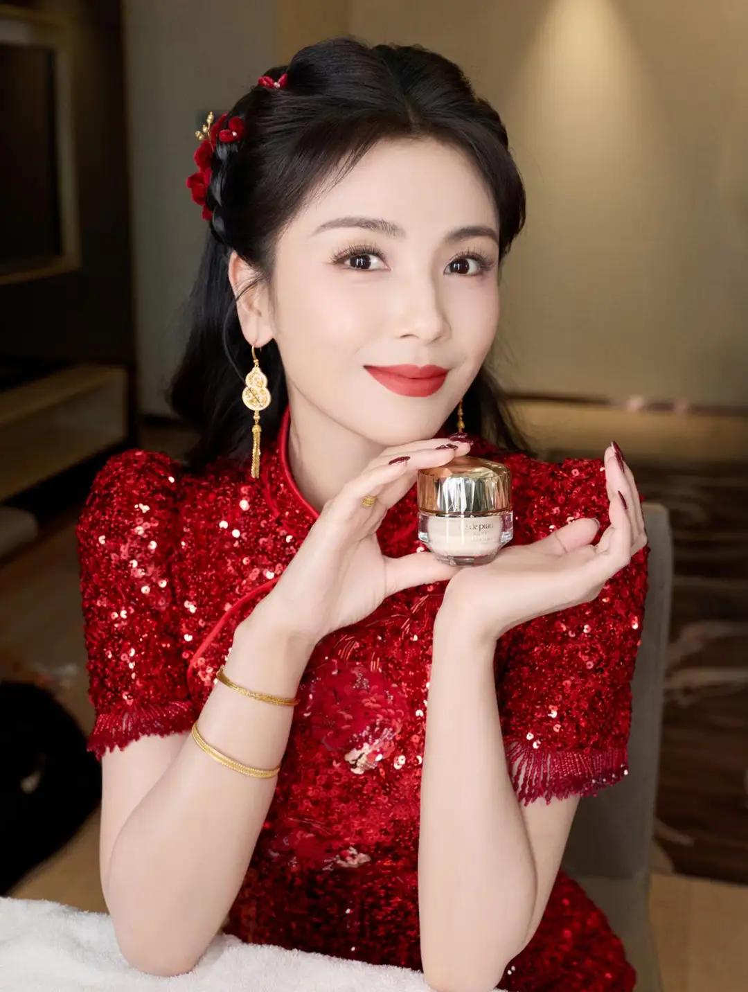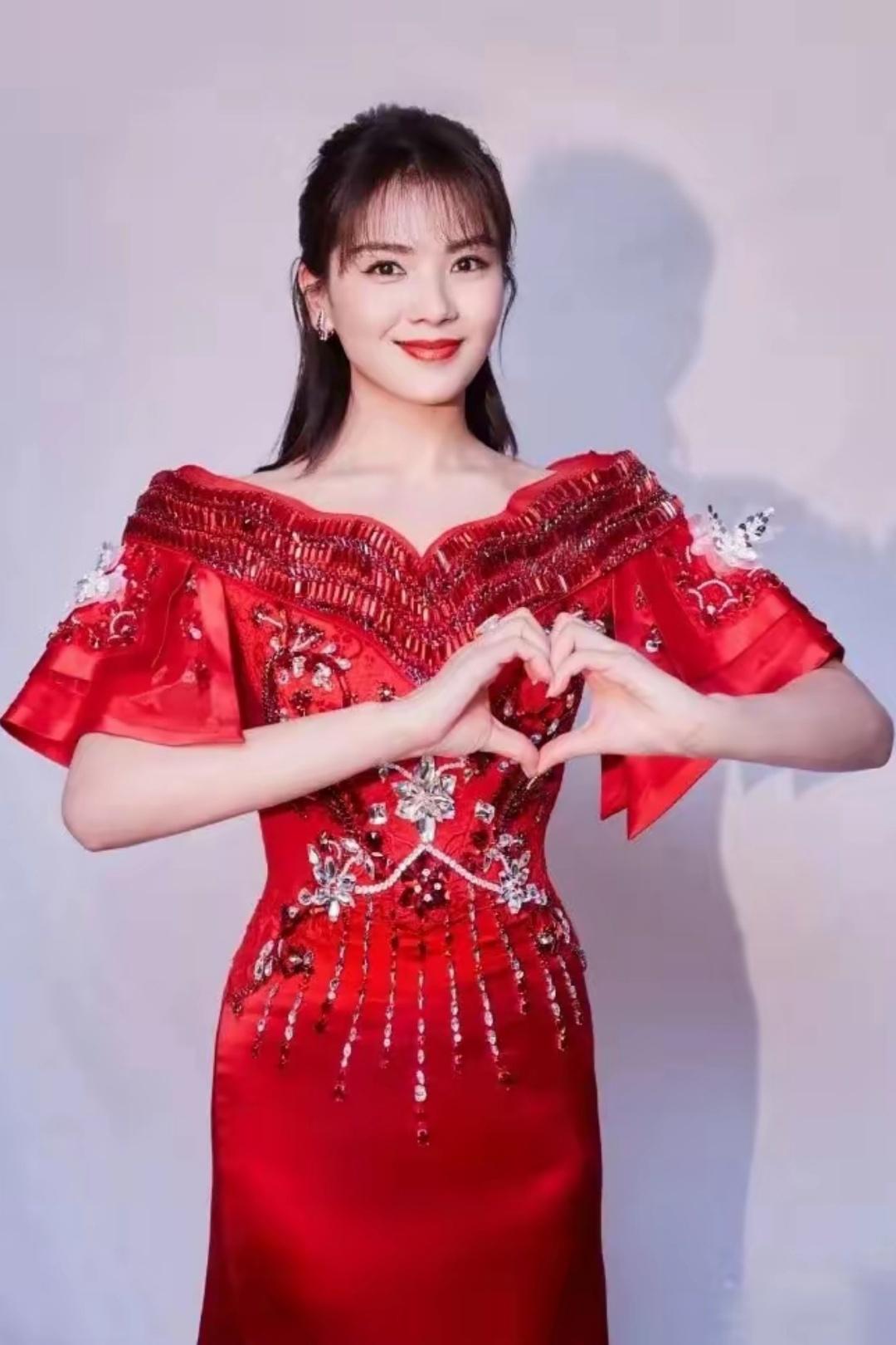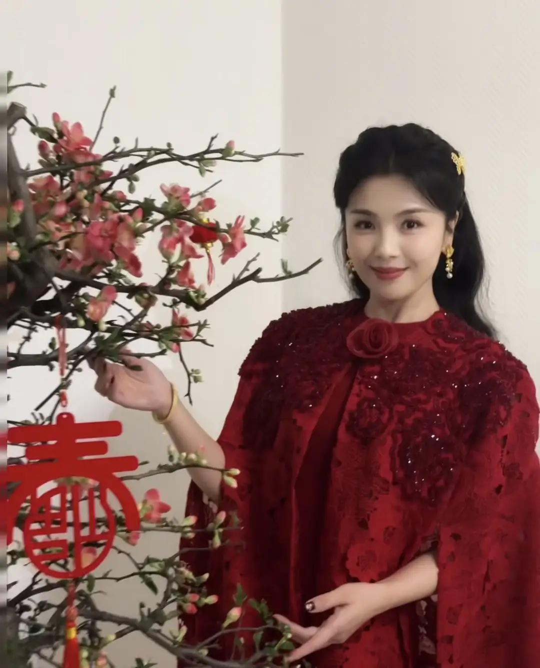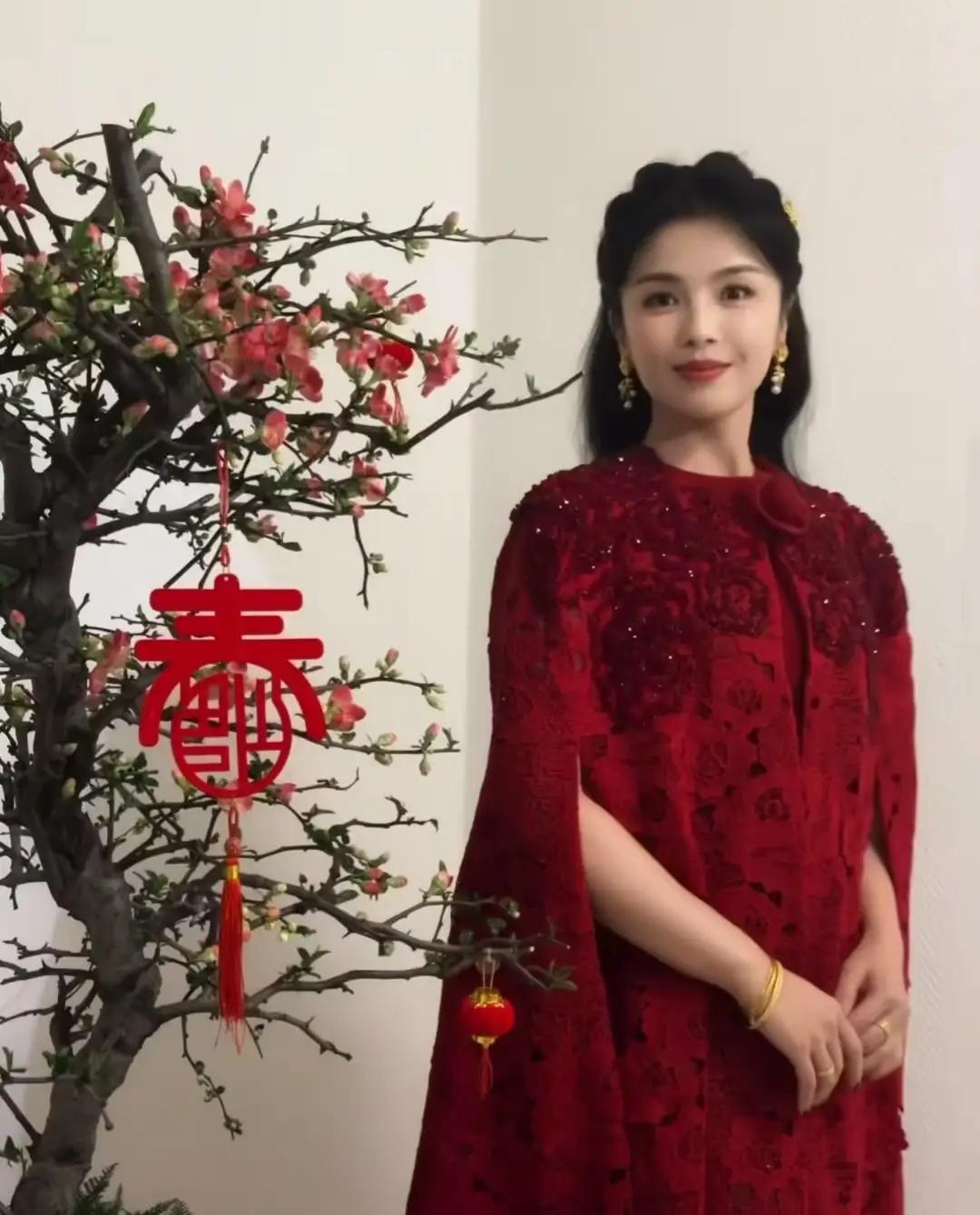 2月16日,杨紫带piupiu来给大家拜年啦穿红衣分享在《玉兰花开君再来》剧组