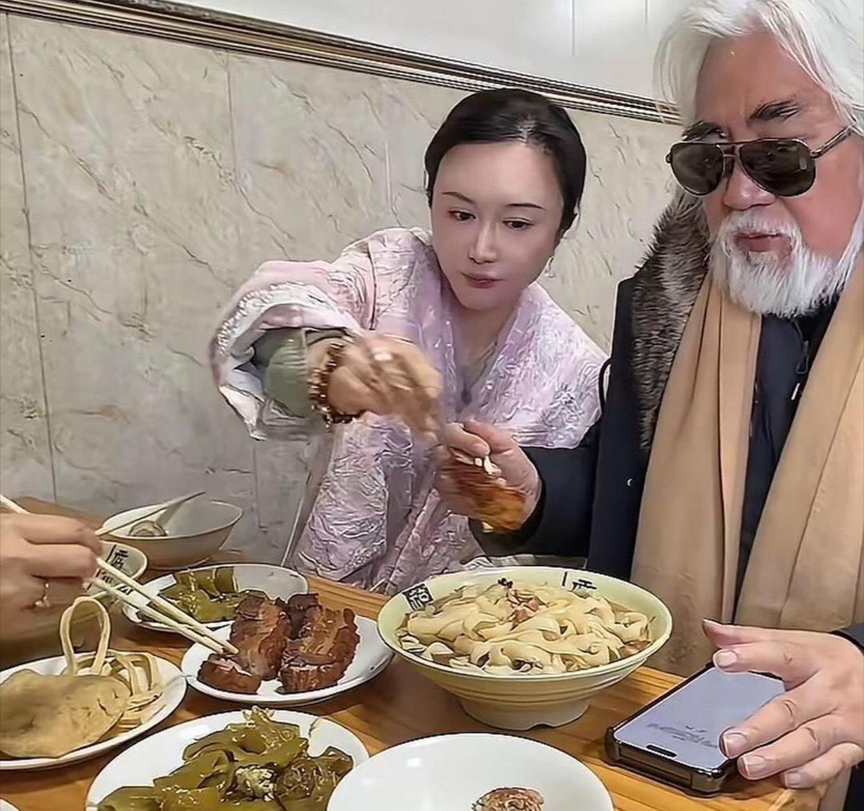 张纪中夫妻俩人在武汉吃油泼面被偶遇
