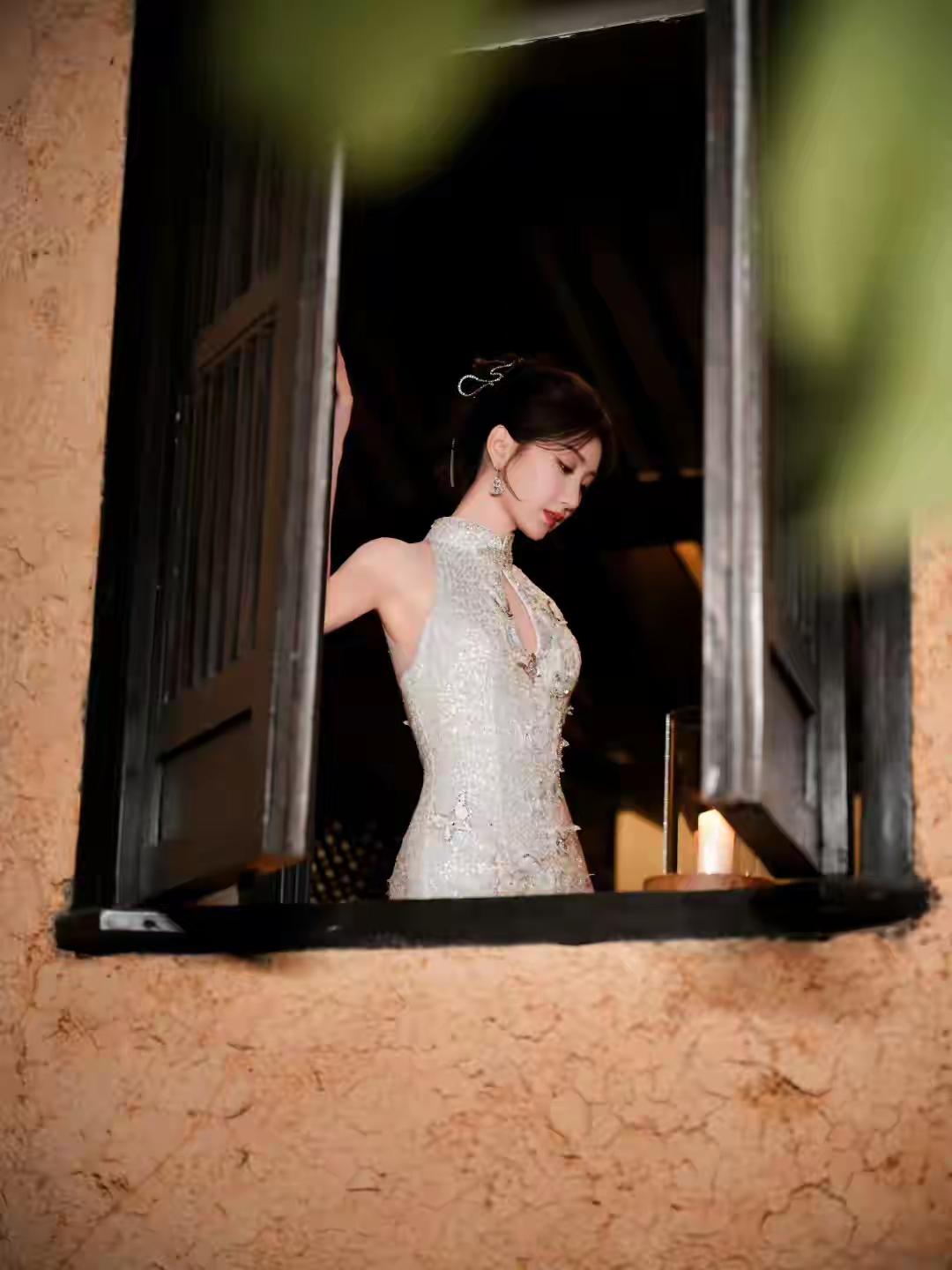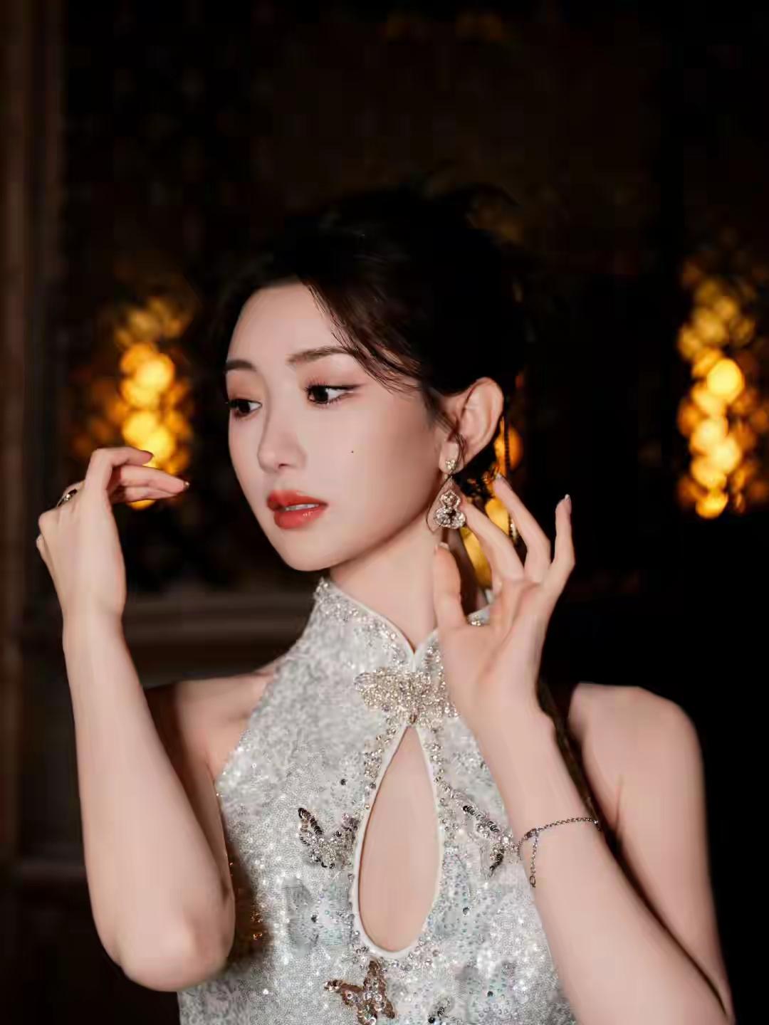 张天爱跟素人合影,胯真的好宽,大宅院似的
