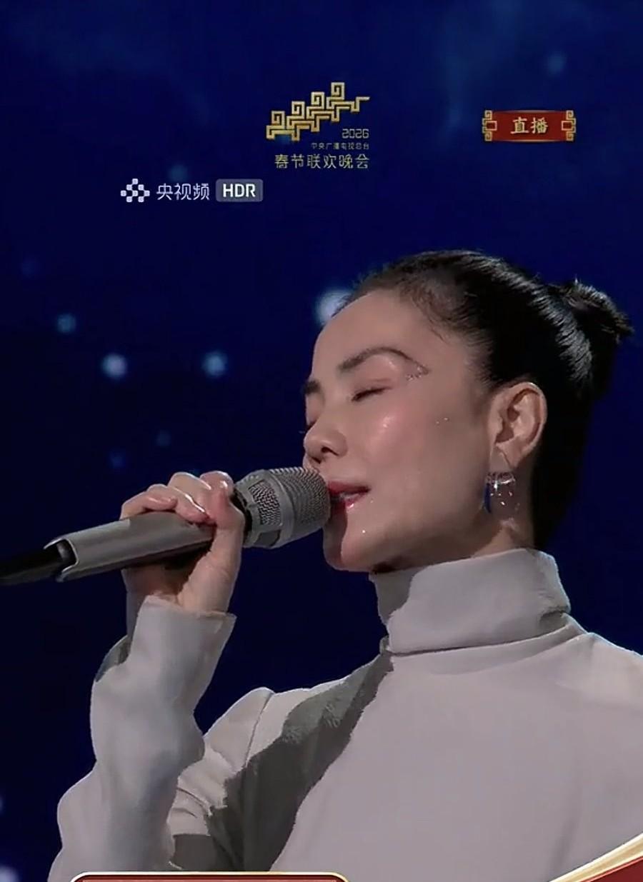 王菲春晚献唱,真是老了,声音还算空灵! 2月16日晚上除夕夜,万众期待中,王菲出场登陆央视春晚,献唱《你我经历的一刻》。 她的造型和前几天排练时被拍到的白色衣服短发不一样,这次是把头发扎了起来,戴了大大的虾片翡翠耳环,她的脸比较方正,显得大气端庄了。 原来彩排时的造型不一定会被选中到现场表演,估计是有好几套造型吧。 1969年出生的王菲今年已经57岁了,这次看她在央视表演,近距离下真的老了好多,虽然她声音依旧空灵,但脸上的表情就能看出来年龄了。 都说女性年龄大了以后,经历的事情多了,脸上会有一种沧桑感,再怎么化妆也遮挡不住,王菲正是如此。 要说王菲事业顺风顺水,并不缺钱花,只是年轻时的婚恋有过挫折,比如和窦唯的婚姻,但这些年她跟谢霆锋在一起,是养尊处优的,很少出来露面。 可没想到这回登陆央视春晚的王菲,近距离下老得不能看,一看就是快60岁的中年女性,脸上的皱纹好多,眼睛里也有一种沧桑。 她穿的那件衣服,虽然能看出来身材很苗条,小腹平坦,但衣服有点褶皱,好像质量不好似的,顿时拉低了她的气质。 王菲依旧轻声地唱歌,如同她年轻时开演唱会一样音色空灵,但最后那一幕,当她唱完低头闭眼时,镜头拍了她一下,真的感觉她好老,像是60多岁的刘雪华。