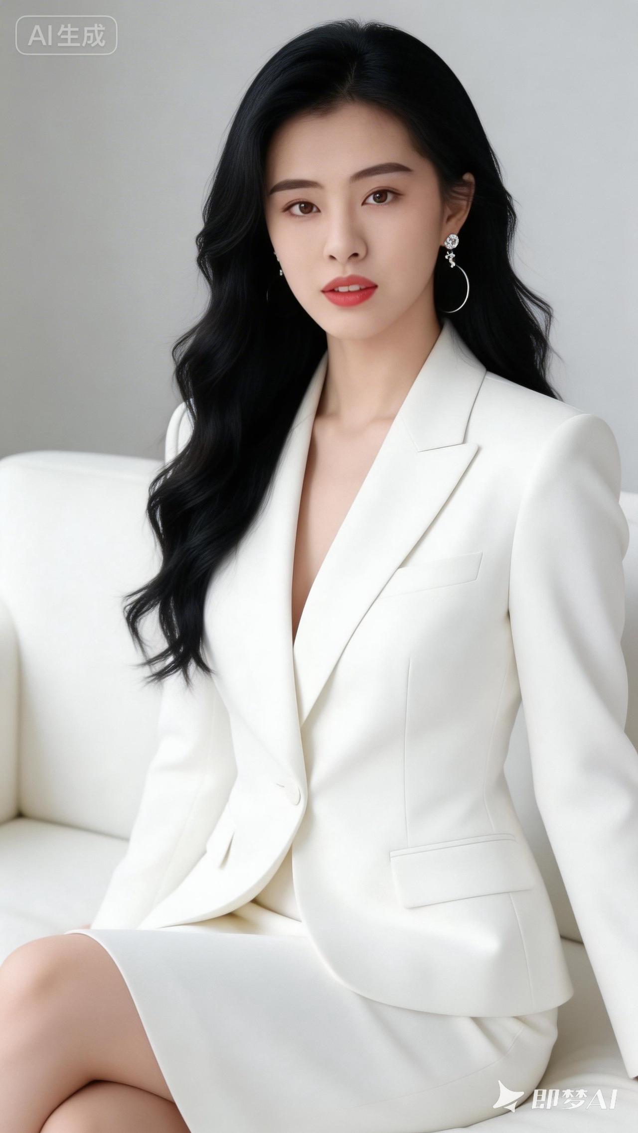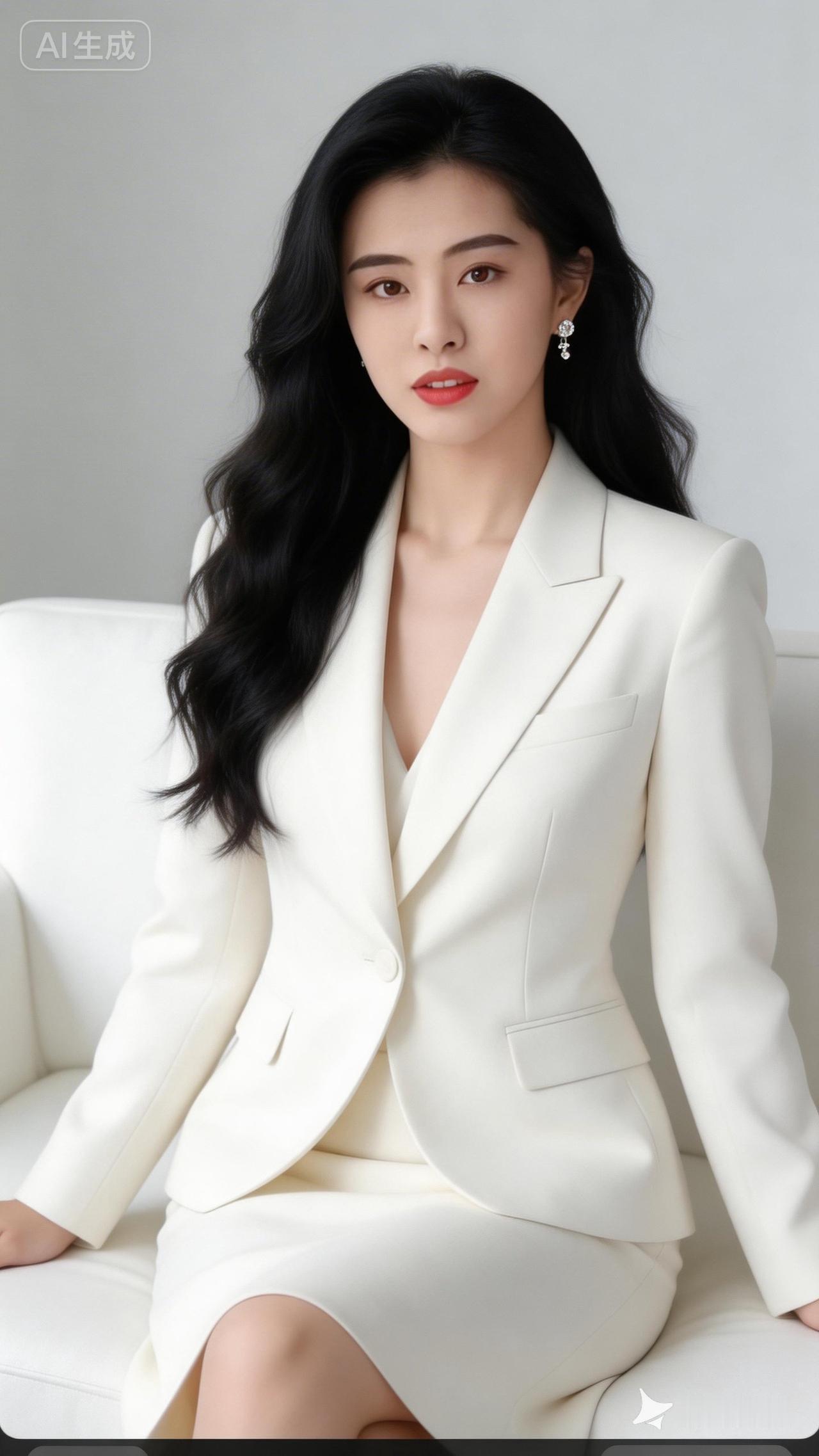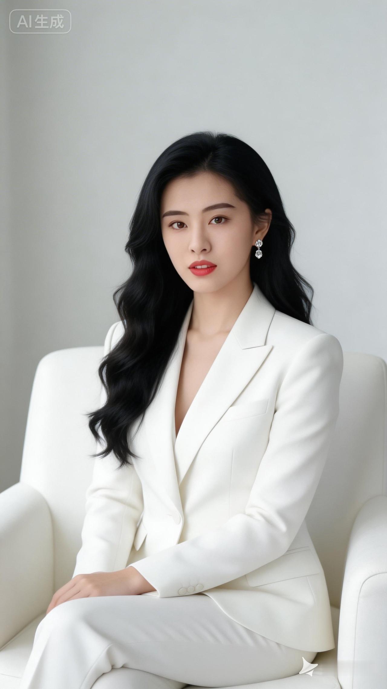 夜晚泳池边的优雅白衬衫,红唇与黑发的完美搭配,尽显都市女性的魅力与自信。