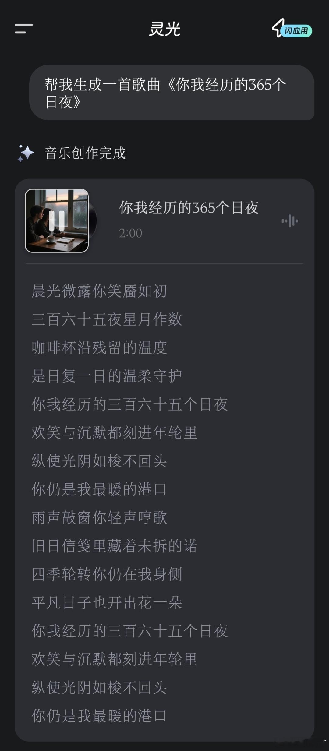 你说这玩意谁研究的呢? 刚刚试着用灵光生成了下《你我经历的365个日夜》 结果,直接就是一个好家伙。 在短短1分钟左右的时间,灵光就生成了一首旋律还不错的歌曲。 现在也就是时长还不够,只有短短2分钟。 要是后面能拉长到4-5分钟,可玩性就太高了。 毕竟,不需要精通音乐就能生成歌曲,对于绝大多数普通人来说,已经足够了。我的马年抓马之旅