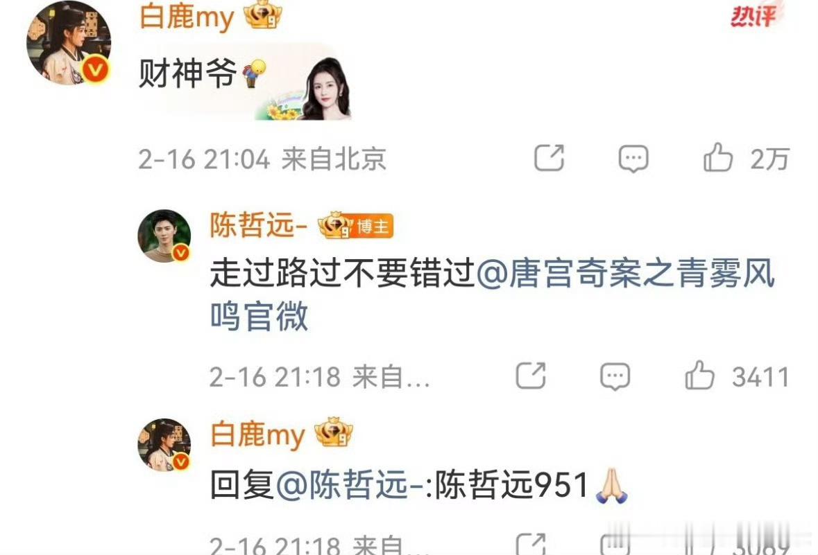 白鹿说陈哲远是951,说了句大实话而已,不服的就多发点红包,26万还不是天花板吗?每年发的都是top,还安慰没抢到的这个家远顶顶好