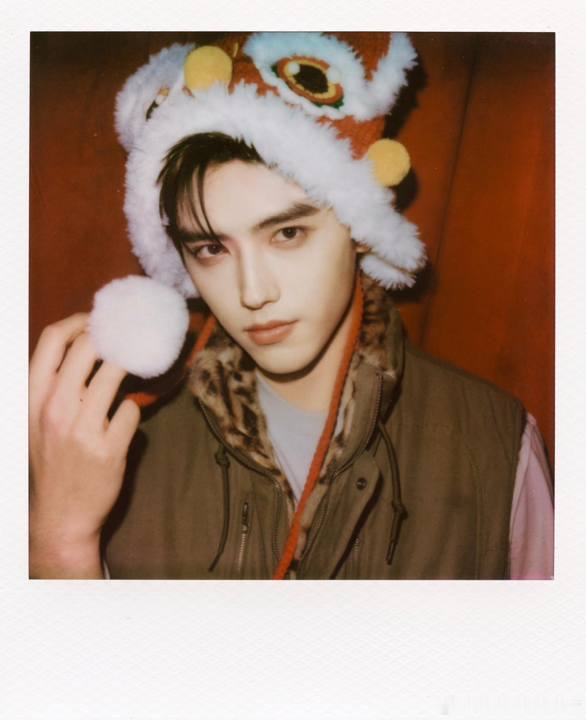 陈飞宇新年拍立得,小狮帽子萌翻了