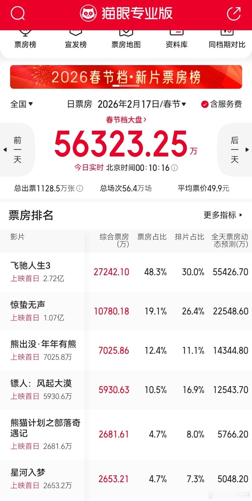 还可以,你不能跟去年比,去年那是有天降紫薇星(我说的当然是哪吒2),记录一下,看看最后票房多少。