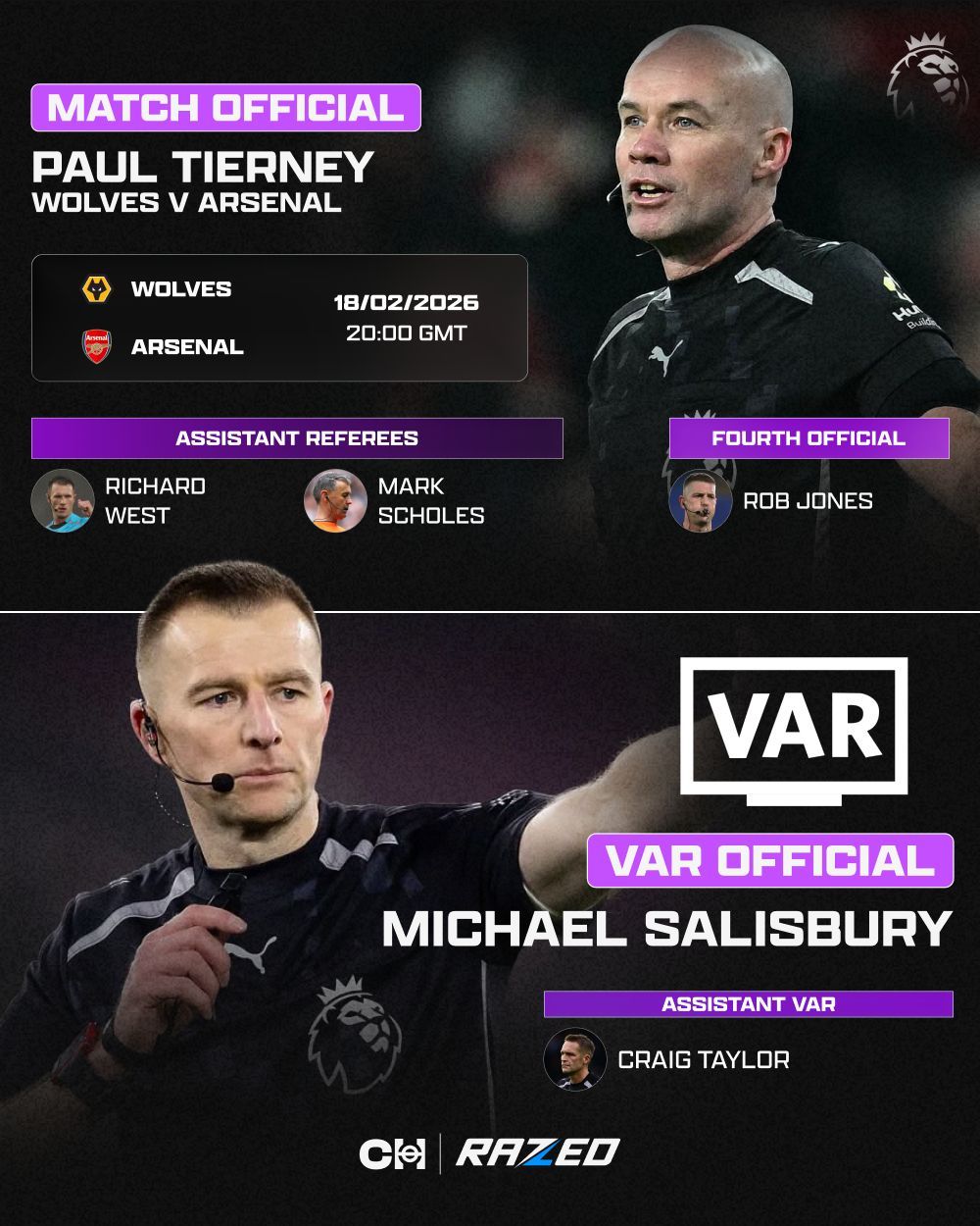 保罗-蒂尔尼将执法狼队vs阿森纳 的比赛