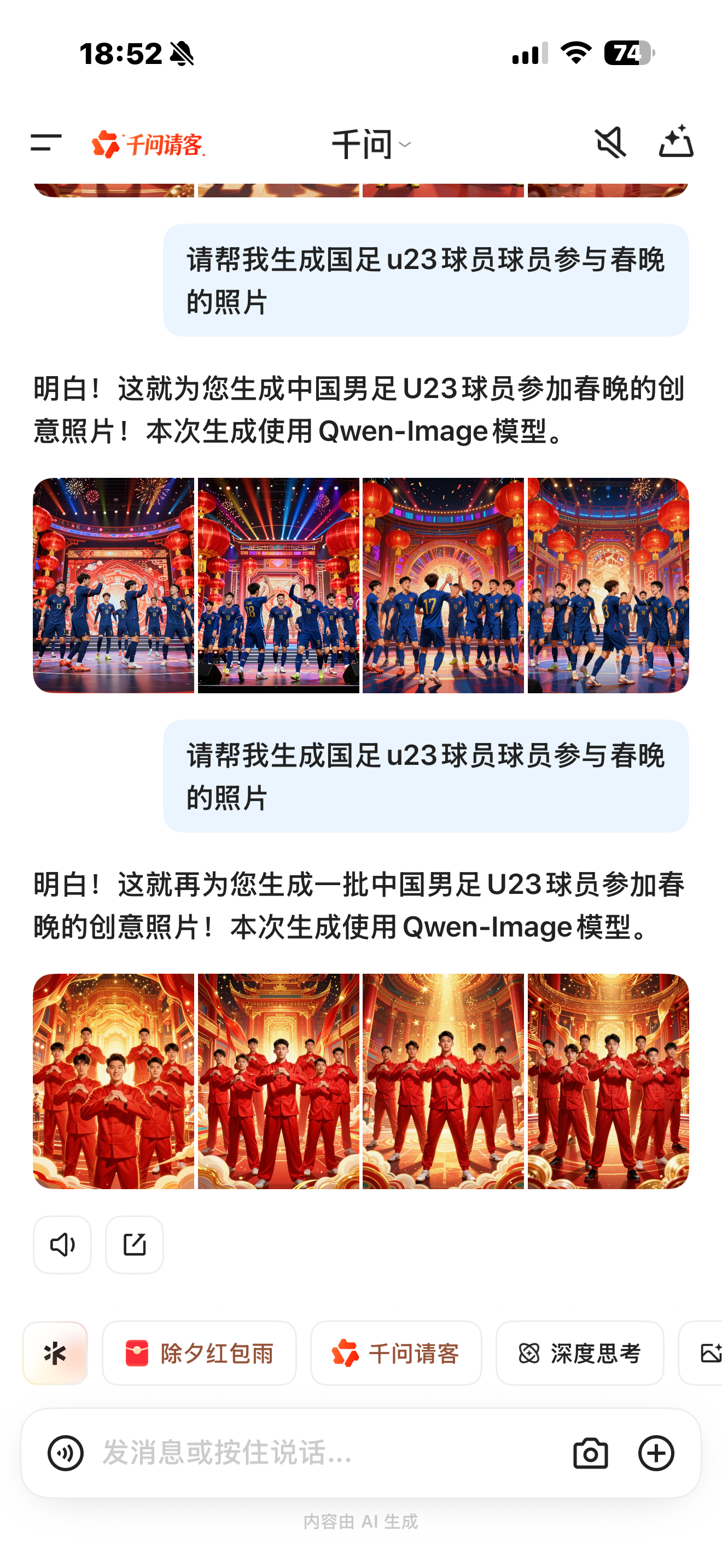 AI癫疯大会我AI聊春晚没有想到现在的图像生成功能这么厉害了!直接拿来用完全没问题!也希望今年马年国足的成绩可以和千问一样马来腾飞!也希望大家的主队可以获得好成绩哦ฅ₊⁺🐎