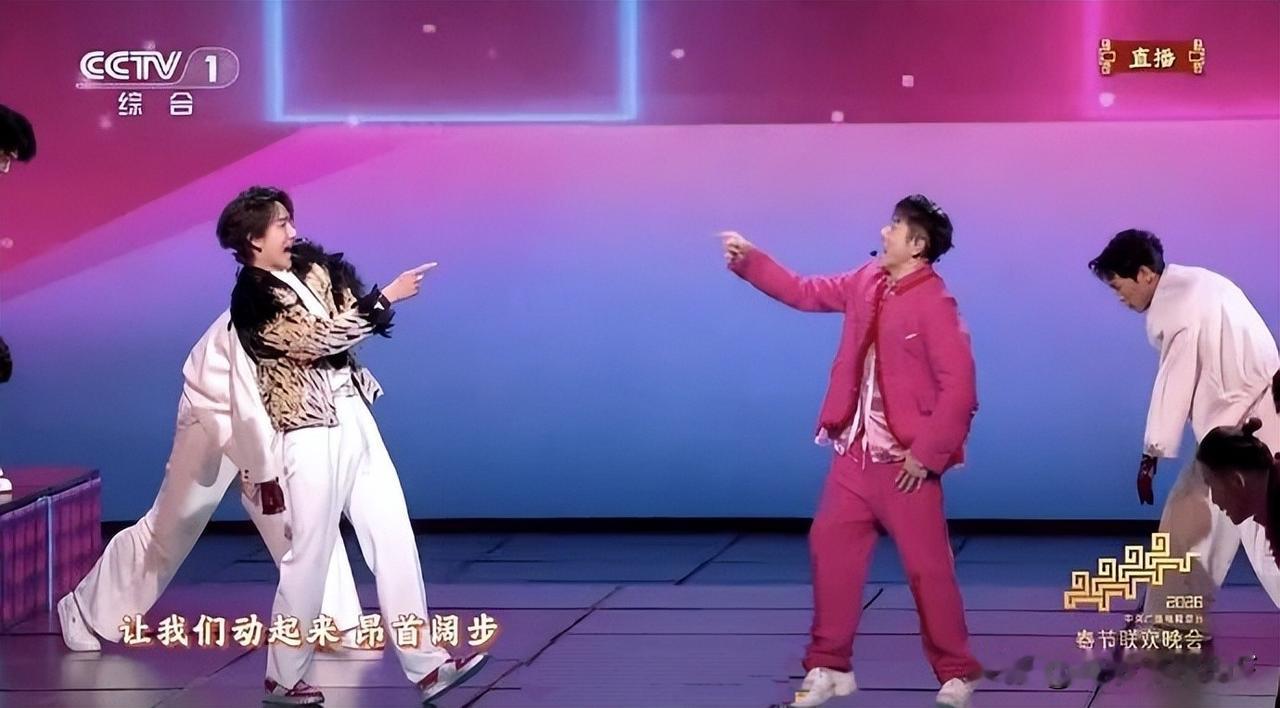 这回是“法拉利”遇上“兰博基尼”,亚洲舞王郭富城与新生代舞王王一博同台《闪耀动起来》,一边是郭富城的玫粉色光影区,一边是王一博的暗蓝色光影区,双色对垒的设计自带张力,配合仿灯光架的色块变换,画面感直接拉满。 两代舞王的斗舞环节利落有力,既复刻了2003年的经典情怀,今年的《闪耀动起来》正是对23年前经典舞台的跨时代致敬。又注入了新生代的锐利锋芒,确实配得上“王炸”二字!