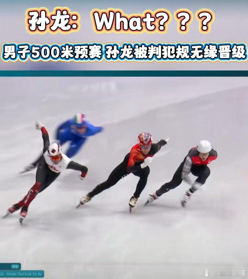 孙龙被判犯规满脸疑惑米兰冬奥会短道速滑男子500米预赛,刘少昂、林孝埈顺利晋级1/4决赛!孙龙被判犯规(PEN),遗憾止步预赛。镜头前他盯着大屏幕,满脸疑惑与不甘,看着太让人心疼。