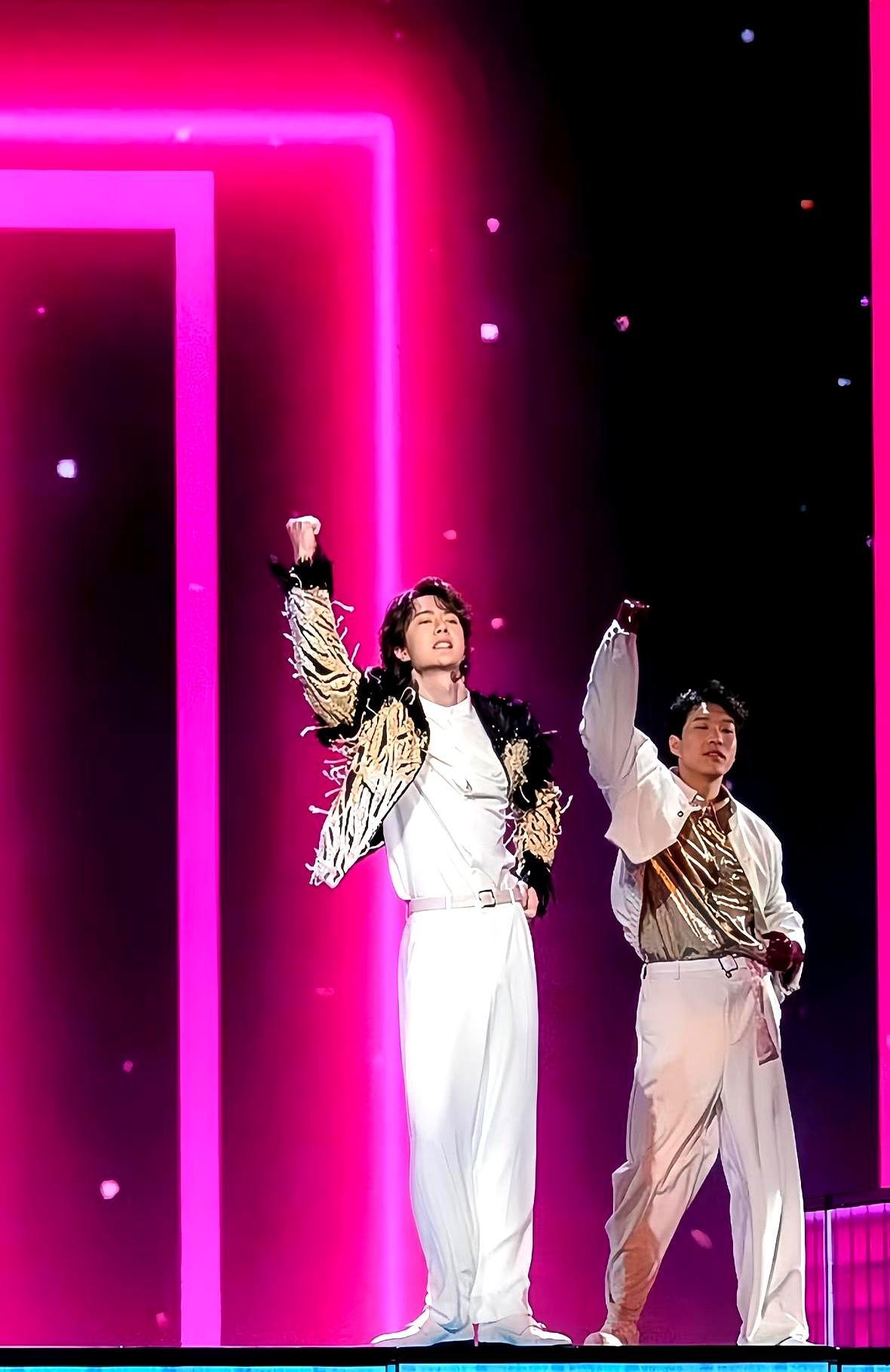 这件黑金羽毛夹克,巴黎高定周发布才十几天,就被他穿上了春晚。 全球首穿。 振臂转身带起一片金色羽浪。王一博和郭富城跳的是《闪耀动起来》,但所有人的眼睛都被那件会飞的衣服钉住了。网友说这是“法拉利遇到兰博基尼”,台下坐着的郭天王当年也是舞王,此刻看着羽毛随节拍高频颤动,像看见自己年轻的影子。 衣服重工,绣的是金龙。但一动起来,哑光黑底上的金线全活了,肩上的羽毛扑簌簌的,根本不像件高定,倒像长在他身上的翅膀。全开麦唱跳,气息稳得吓人,纯白裤腿扫过舞台,干净得没一丝多余晃动。你突然看懂了他选这身的原因——不是来唱歌的,是来给春晚时尚换血的。 表演完,王一博春晚羽毛战袍秒上热搜。有人数了,那件夹克手工刺绣超过两百工时。所以这到底是一场秀,还是新生代舞台王者用极致专业,给自己挣来的排面?
