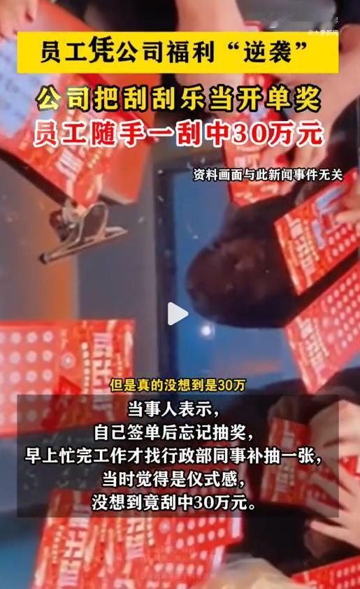 万万没想到!2月10日,贵阳一家公司里,上演了一幕让人羡慕到眼红的场景。这家公司为了激励员工,特意选用10元面值的刮刮乐,作为员工开单后的额外奖励,没想到一名员工完成开单后,随手拿起一张刮刮乐轻轻一刮,竟意外中了30万元大奖。 事情发生在2月10号下午,那天贵阳的天气平平常常,这家公司里也和往常一样,大家各司其职,敲键盘、打电话的声音此起彼伏,没人会想到一场天大的惊喜,正在悄悄降临在一个普通职员身上。 后来听人说这家公司为了激励员工,年前特意换了个福利方式,不像往年那样发红包、搞集体旅游,也不发那些家家户户都有的电饭煲、食用油之类的东西。 老板觉得往年的福利花了不少钱,可员工大多没什么感觉,甚至觉得是理所当然,起不到多少激励作用,所以今年干脆换了个简单直接的路子,员工只要谈成一单业务,就奖励一张10块钱面值的刮刮乐。 这个规则听起来很简单,甚至有点随意,10块钱一张的刮刮乐,大家也没抱什么太大希望,毕竟这种彩票,大多时候都是“谢谢参与”,就算中了奖,顶天也就几百块,最多够买几天菜,没人会想到能中什么大奖。 公司里的员工也都这么想,包括那个后来中了奖的哥们儿,他就是公司里最常见的那种老实人,平时踏实肯干,话也不多,这段时间为了谈成一单业务,没少在办公室熬大夜,加班到深夜更是常有的事。 2月10号下午他终于谈成了一单业务,按照公司的规定,领到了一张10块钱的刮刮乐。当时他还在和身边的同事随便闲聊,语气里带着点自嘲,说自己从小到大运气都不好,这张刮刮乐估计也只是给福彩事业添点力,根本不会中什么奖,说着他就漫不经心地用指甲,一点点蹭着刮刮乐上的银色涂层,动作随意得不能再随意。 一开始银色涂层卷曲、脱落,露出底下零星的红色印刷体数字,他也没太在意,依旧和同事插科打诨,可随着涂层一点点被刮开,他的动作渐渐慢了下来,脸上的笑容也慢慢僵住了。 一开始他以为自己看错了,反复蹭了好几下,直到那个数字“3”后面的零,一个个清晰地露出来,他彻底愣住了,瞳孔都放大了,手里的刮刮乐差点掉在地上。 那不是三百也不是三千,而是整整三十万,一串醒目的“300000”,清清楚楚地印在刮刮乐上,那一刻,办公室里的空气仿佛都凝固了,他愣在原地好半天都没反应过来,甚至怀疑自己是不是最近加班太多,熬得出现了幻觉,连眼睛都看花了。 身边的同事察觉到他的不对劲,纷纷凑了过来,当大家看清刮刮乐上的数字时,先是一阵集体倒吸凉气,紧接着就爆发出了响亮的尖叫声,此起彼伏的呼喊声,才把他从那种恍惚又超现实的状态里拉了回来,直到这时候他才真正相信,自己真的中了三十万大奖,不是幻觉是实实在在的好运。 一瞬间整个办公室就炸了锅,原本安安静静的办公区,瞬间变得沸腾起来,大家纷纷围过来,凑到他身边看刮刮乐,一个个脸上都写满了羡慕,有人赶紧掏出手机拍照、拍视频,嘴里还不停念叨着“太幸运了”“羡慕哭了”,仿佛只要把这个幸运的画面存进手机,好运就能传到自己身上。 没人能想到一张10块钱的刮刮乐,竟然能开出三十万的大奖,更没人想到这份好运会落在一个默默努力的老实人身上,后来有人说这哪里是运气好,分明是老天爷给他的加班费算的利息,他这段时间熬的夜、付出的努力,总算没有白费,以这样一种意想不到的方式,得到了一份大大的回报。 这件事很快就被传到了网上,网友们看到后,评论区里全是“接好运”“沾喜气”的留言,大家都在羡慕这个幸运的职员,其实这背后,更多的是大家心里那份朴素的愿望,辛苦了一整年,谁不盼着生活能突然给你一个惊喜,塞一颗大得吓人的糖呢? 估计这家公司的老板,做梦都得笑醒。虽然这三十万的奖金,并不是公司出的,而是彩票中心承担,但这场意外的好运,给公司带来的效果,哪怕砸几百万广告费也换不来,一张10块钱的刮刮乐,不仅成功激励了员工,解决了节前大家容易懈怠的问题,还让公司出了名,成了大家津津乐道的话题。 当时的贵阳街头,年味已经越来越浓,到处都透着喜庆,但恐怕没有哪个地方的喜气,能比得上这家公司里的沸腾,毕竟在这充满不确定性的日子里,能亲眼见证一个普通人,凭借一份努力,意外收获这样一份逆天好运,真的会让人觉得,人间值得,所有的努力,都有可能迎来意想不到的惊喜。