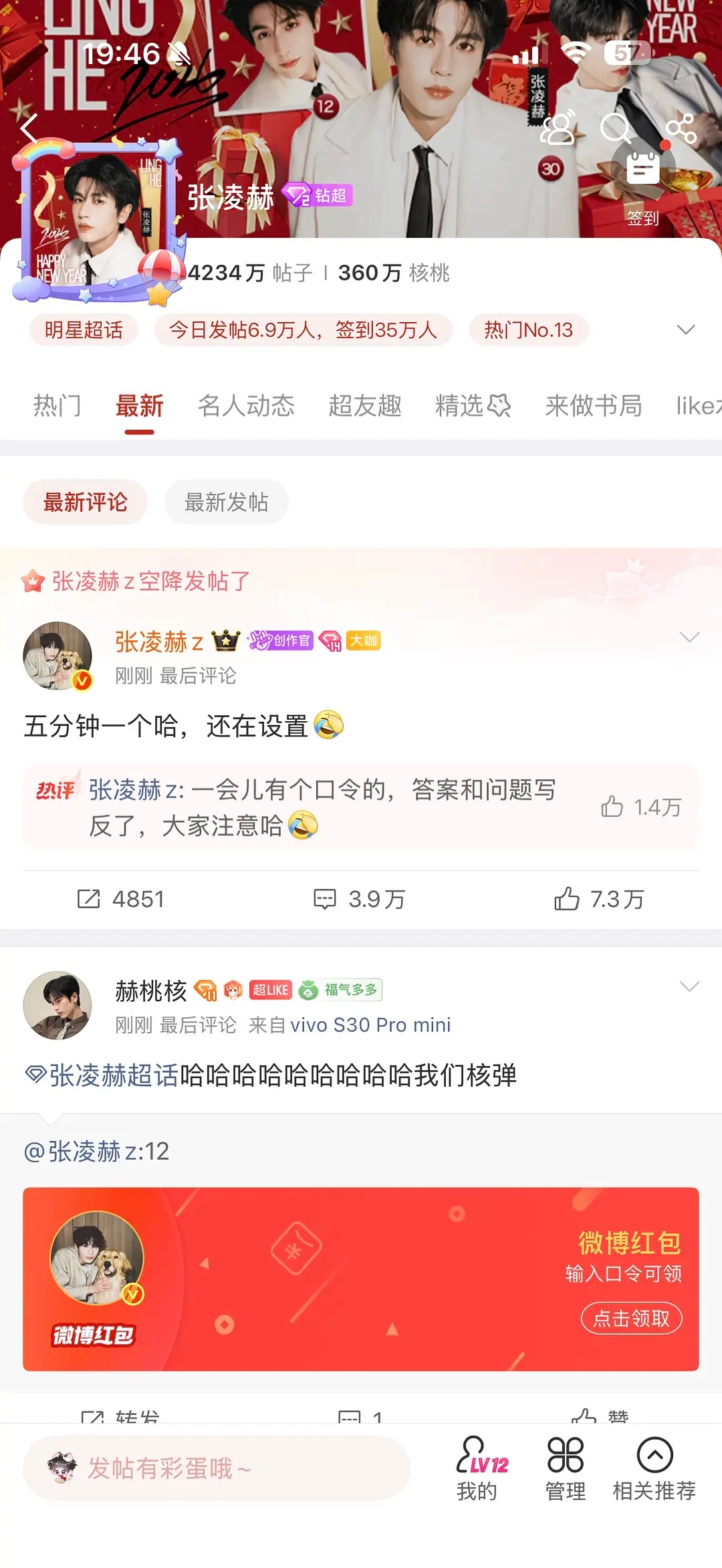 张凌赫发了15万的红包 15万啊哥哥别发了。。真的太宠粉了