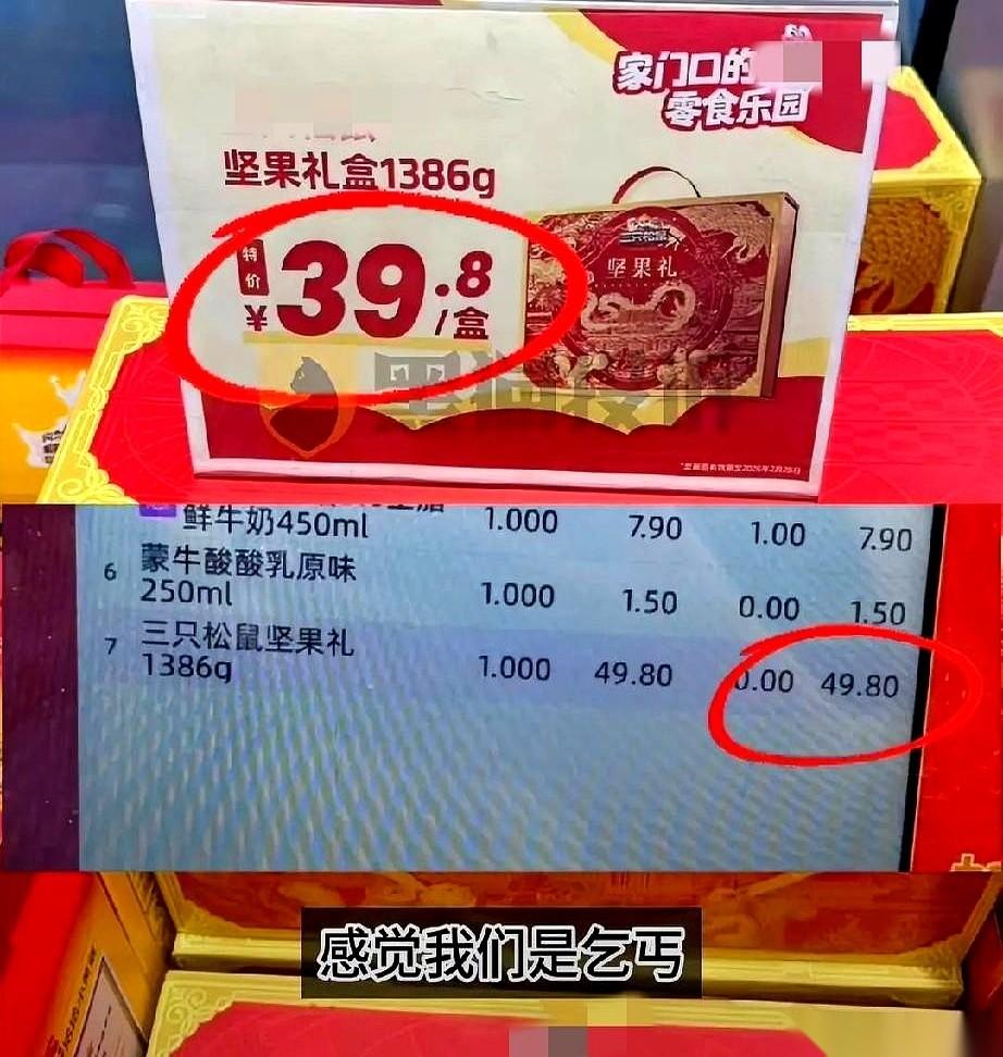 “行吧,你扫10块钱让她走吧。” 就店长电话里这句轻飘飘的话,是真把人给气炸了。 啥意思? 这是打发要饭的呢? 本来挺简单一事儿。 一个姑娘,在零食店买个标价39块8的坚果礼盒,结账的时候,扫出来49块8。 多收10块,谁都得问一句吧? 结果你猜店员怎么说? 眼皮子都不抬一下,冷冰冰地甩过来一句:“你要买就是49.8,要么就别买!” 嚯,我当时就想,这年头做生意都这么硬气了吗? 我花钱消费,怎么感觉跟孙子似的。 这已经不是10块钱的事儿了。 这是尊严问题。 是我凭什么要为你的错误买单,还要看你脸色的问题。 姑娘也是个明白人,就站在那儿,坚决不付这多出来的10块。 店员没办法了,打电话给店长。 本以为来了个能主持公道的。 结果,就听见了电话那头那句,堪称年度最扎心的话: “行吧,你扫10块钱让她走吧。” 听听,这叫什么话? 那潜台词就是:别跟她废话了,就是为了贪这10块钱,给她,让她赶紧滚。 这一下,比店员那句“爱买不买”的杀伤力大一百倍。 直接把人当成胡搅蛮缠、贪小便宜的市井无赖了。 说白了,从头到尾,人家就没觉得是自己错了。 他们不觉得标错价是问题,反而觉得你这个“发现问题”的人,是个大麻烦。 很多时候我们去争,去较真,真不是为了那三块五块的。 就是为了争一口气。 争一个“我没错,你不能这么欺负人”的理儿。 退钱是应该的,但那份被践踏的尊重,谁来赔?