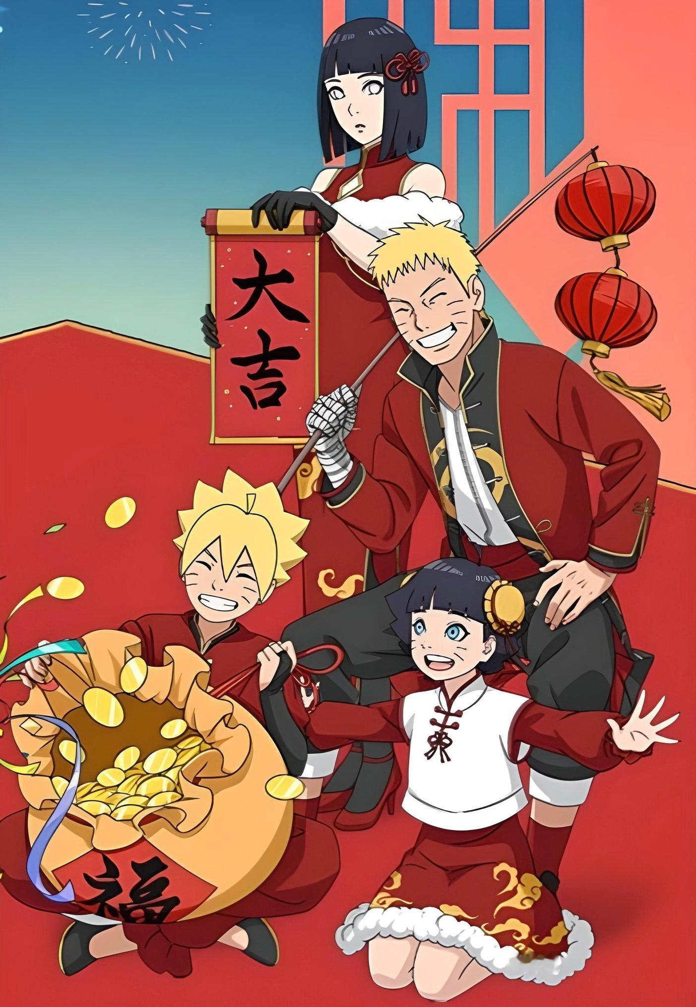 佐助一家&鸣人一家祝大家新年快乐!🎇火影忍者漩涡鸣人宇智波佐助
