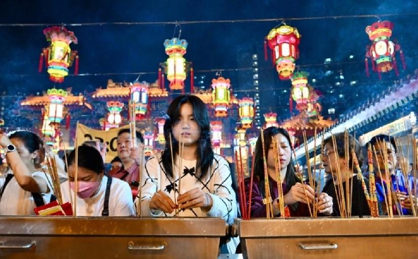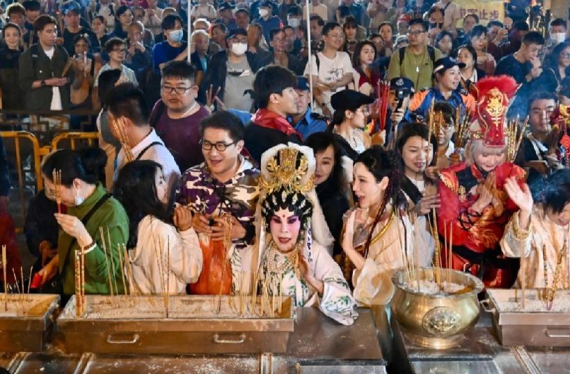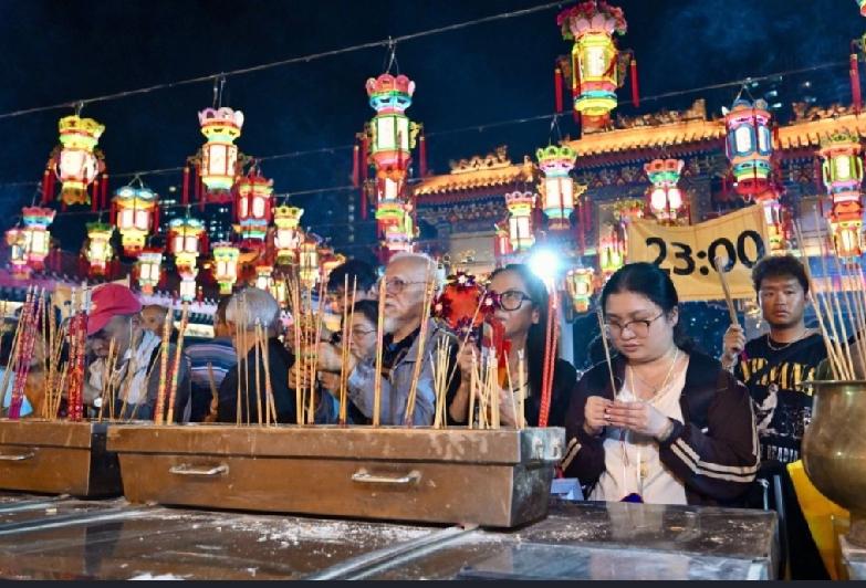 马年,上「头炷香」是香港黄大仙祠历史悠久的传统习俗,踏入大年初一子时,奉献第一炉香,以表虔诚之意,祈求来年平安顺遂。今日年廿九( 16日 )啬色园黄大仙祠晚上9时正开放予善信进入黄大仙祠第一参神平台等候,大批善信从入口跑上来至黄大仙宝殿正前方的上香等候区,分为11时和12时两批上香时间,现在有职员在场维持秩序。 黄夏惠今年打扮成观音 部分善信精心打扮上头炷香,有人更配合马年戴上马造型的帽子,十分抢眼。而每年均会到黄大仙祠霸头位上「头炷香」艺人黄夏蕙今年打扮成观音,她下午已到达黄大仙祠,自言信奉观音,观音亦有求必应。至于今年愿望是「世界和平,大家都有工做、有屋住、有饭食」,她又祝福市民马年「身体健康,马上有钱」。