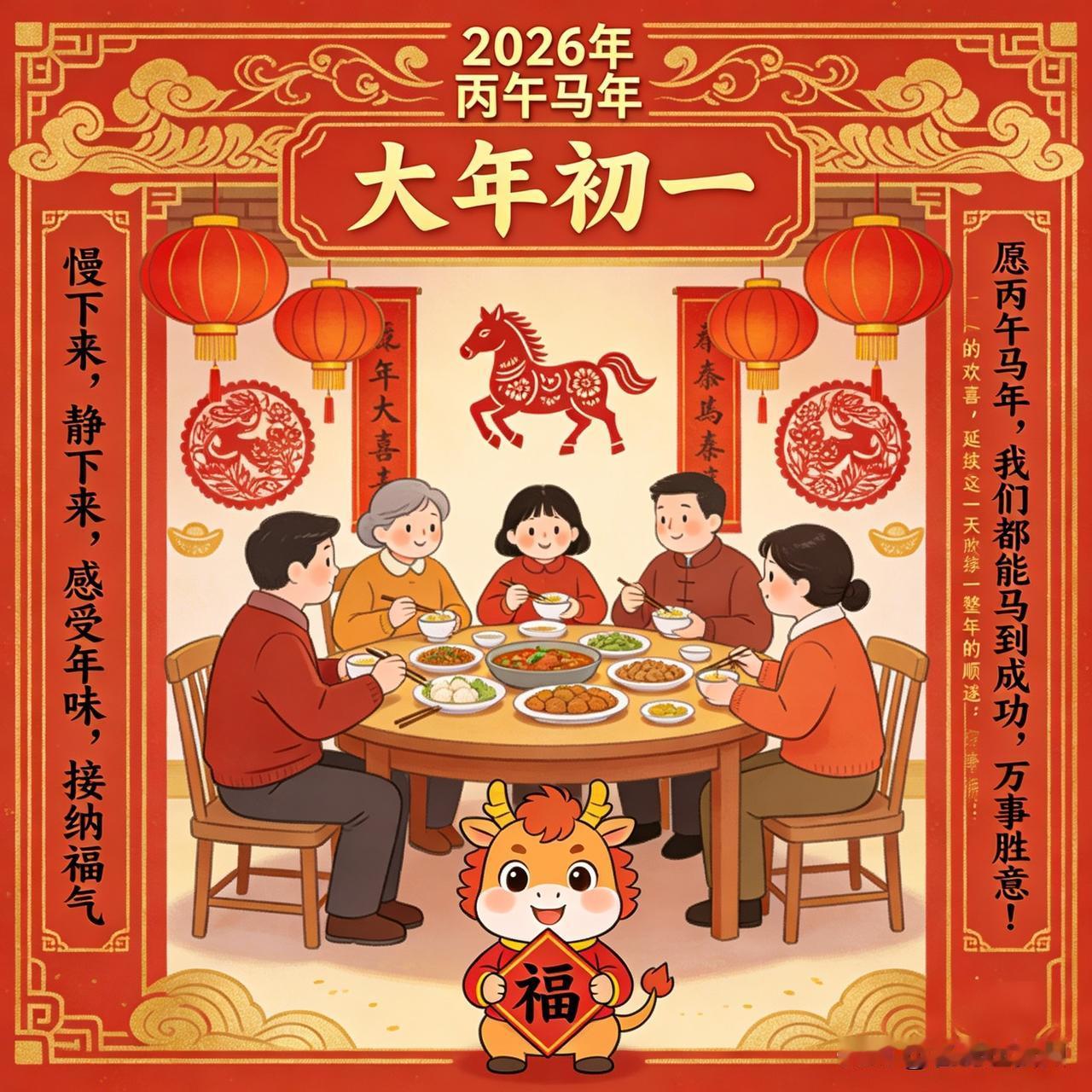 大年初一这6个“忌讳”,不是迷信,是马年开挂的秘诀! 我跟你讲,今天是大年初一,2026丙午马年的头一天!这日子口,咱们中国人最讲究啥?讲究的不是你能挣多少钱,而是你能守住多少福气。 我发现一个特别有意思的现象:很多人除夕夜还在朋友圈发“辞旧迎新”,结果大年初一早上第一件事就是睡懒觉、跟爸妈顶嘴、甚至拿起扫帚把家里的“财气”往外赶。你别笑,老一辈人看了真能跟你急眼。 大年初一主打一个安稳、喜庆、讨吉利。这不仅仅是为了迎合老规矩,这是在给一整年的自己定调子。今天要是过顺了,接下来三百多天想不顺都难。 第一,早起千万别赖床。 我知道你昨晚守岁熬到两三点,但今天哪怕硬着头皮也得爬起来。这叫“开门纳福”。你想啊,新年的第一缕阳光,你要是拿后背对着它,福气怎么进你屋?精神饱满地推开窗户,寓意新的一年你干啥都是一马当先,不落后。 第二,穿新衣不光是为了臭美。 别穿得一身黑不溜秋的,哪怕是件红内衣、红袜子,都得给自己整点红。这叫什么?这叫“红红火火”。特别是马年,你穿得精神,出门见人一句“过年好”,对方看你喜庆,好运自然就愿意跟着你走。 第三,餐桌上的彩头你得吃进嘴里。 北方人吃饺子,那是元宝下肚,招财进宝;南方人吃汤圆、年糕,那是团圆高升。哪怕你不饿,也得夹一筷子。为啥?这是把“顺顺利利”的念想吃进肚子里,这叫仪式感。 第四,也是最关键的一点——嘴要甜,手要懒。 今天哪怕熊孩子把你的口红涂墙上,哪怕亲戚问工资问得你脑仁疼,千万千万别动气!老话说“初一吵,一年吵”。还有,家里地再脏,今天别扫。水也别往外泼,那是财。垃圾那是福气,得攒着。你就当给自己放个假,懒一点,福气才能留得住。 第五,出门去沾沾人气。 别窝在家里刷手机,去庙会转转,去公园晒晒太阳。见人就说吉利话,哪怕是个陌生人,一句“马年大吉”递过去,换回来的笑脸,那都是今年的运气。 第六,也是我想对你说的心里话——许个愿吧。 别许那种“一夜暴富”的空愿,太虚了。就许个踏实的:平安、健康、顺手。 说到这里,我想反转一下问你一句: 咱们总说年味淡了,其实淡的不是年味,是你觉得这些“规矩”太麻烦。但你发现没有?恰恰是这些“不扫地、不吵架、早起穿新衣”的麻烦,才把你和那个叫做“家”的地方,紧紧拴在了一起。 这一年,不管你是策马奔腾去追梦,还是勒马驻足看风景,只要你今天把这份安稳守住了,这匹马年,你就驾驭得了。 评论区接个龙吧,打出那个你最想要的字: 我只想要一个 “顺” 字!你的是什么?是“发”还是“稳”?