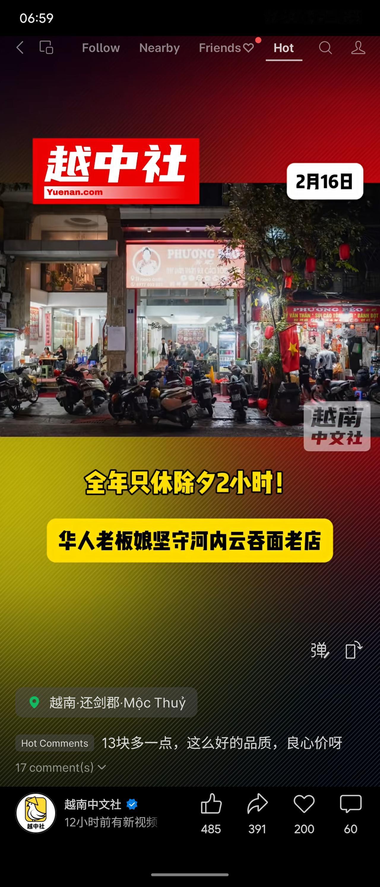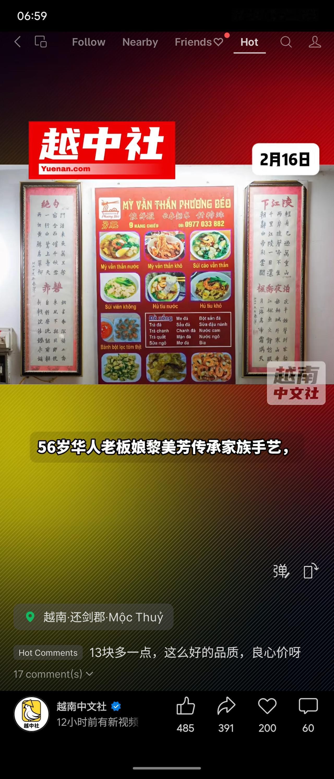 越南河内古街有家华人云吞面店,56岁老板娘黎美芳坚守20年,传承家族手艺。她每天只睡5小时,坚持秘方不外传、食材不隔夜,一碗面售价5万越南盾(约13元人民币),被赞“良心价”。 在异国他乡坚守传统二十年,用凌晨的灯火守护一碗云吞的温度。这不仅是对家族手艺的传承,更是中华饮食文化在海外的鲜活注脚。那份“秘方不外传”的执着与“食材不隔夜”的诚信,正是当下快餐时代最稀缺的人情味。