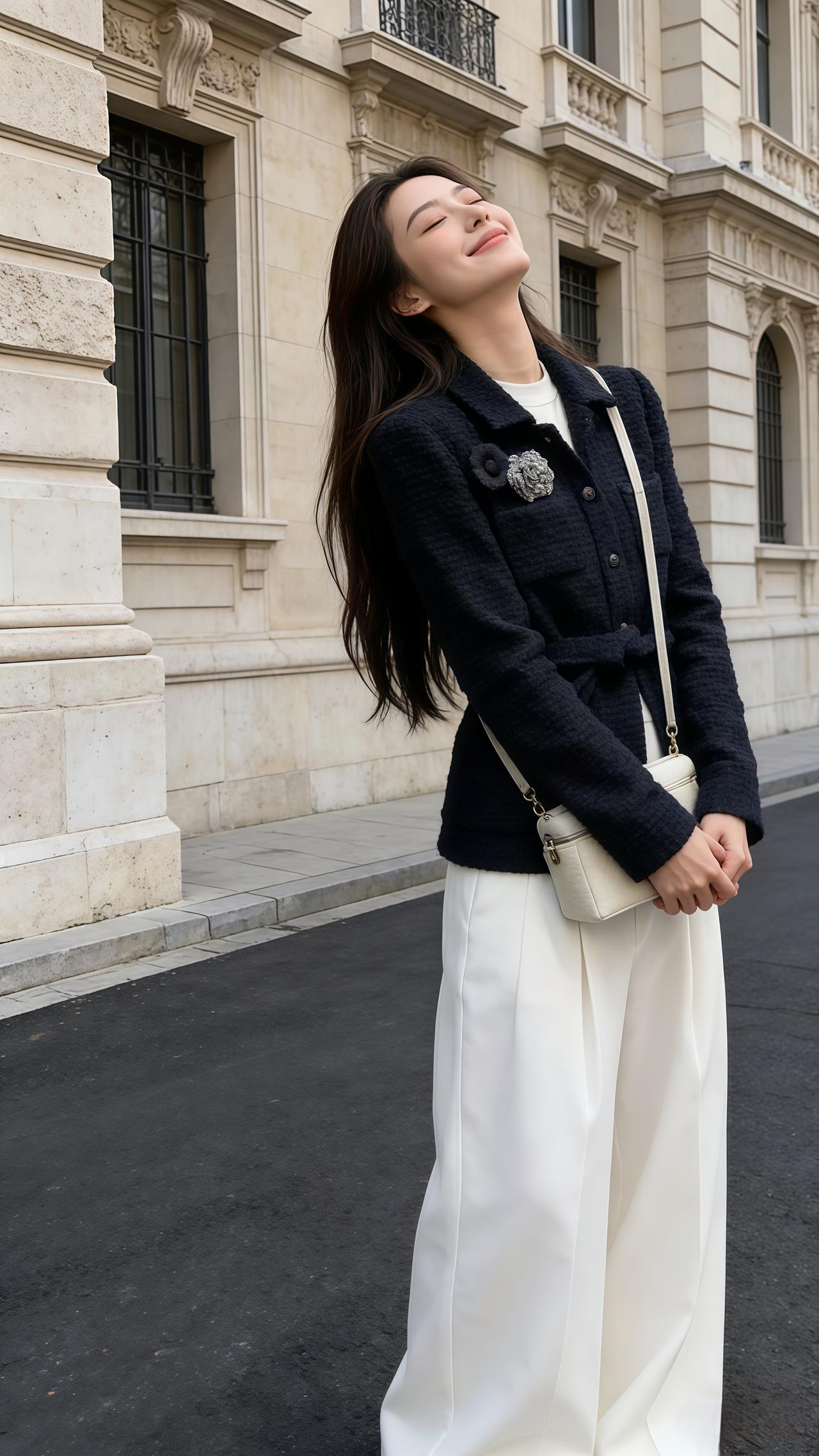 白色针织开衫配黑色微喇裤经典黑白配简直yyds软糯白色针织开衫贴身穿超舒