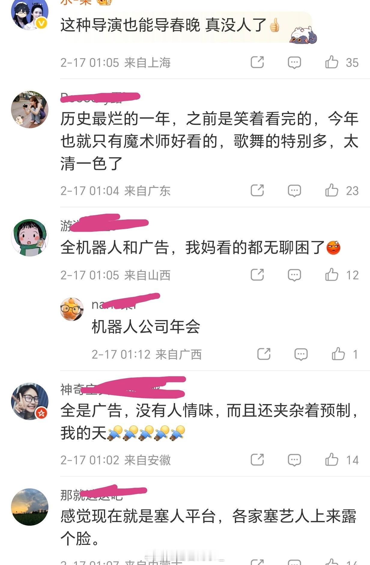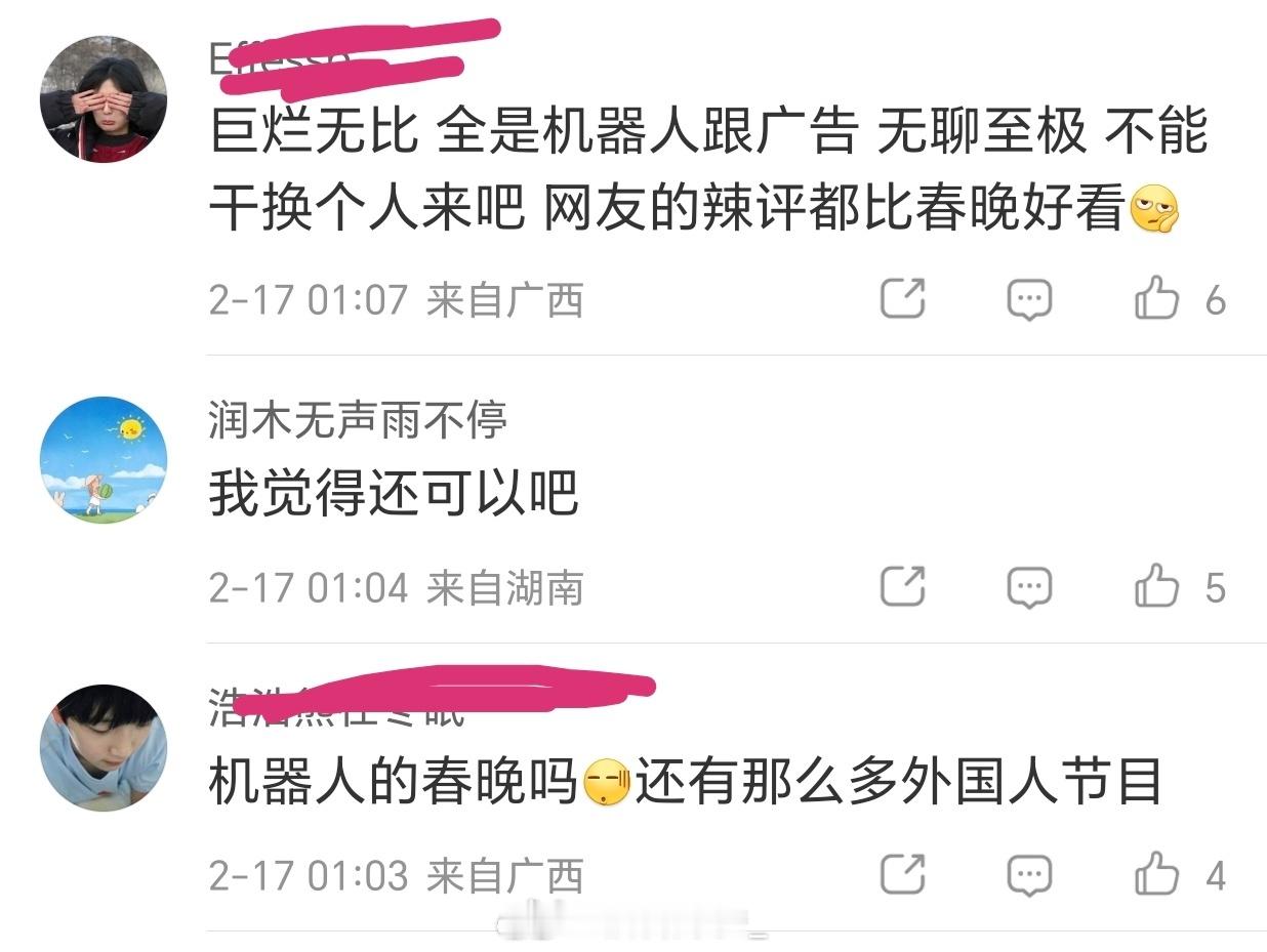 春晚收视率稍微看了一下春晚收视率的评论,我感觉“春晚机器人”真的让某些人破大防了!