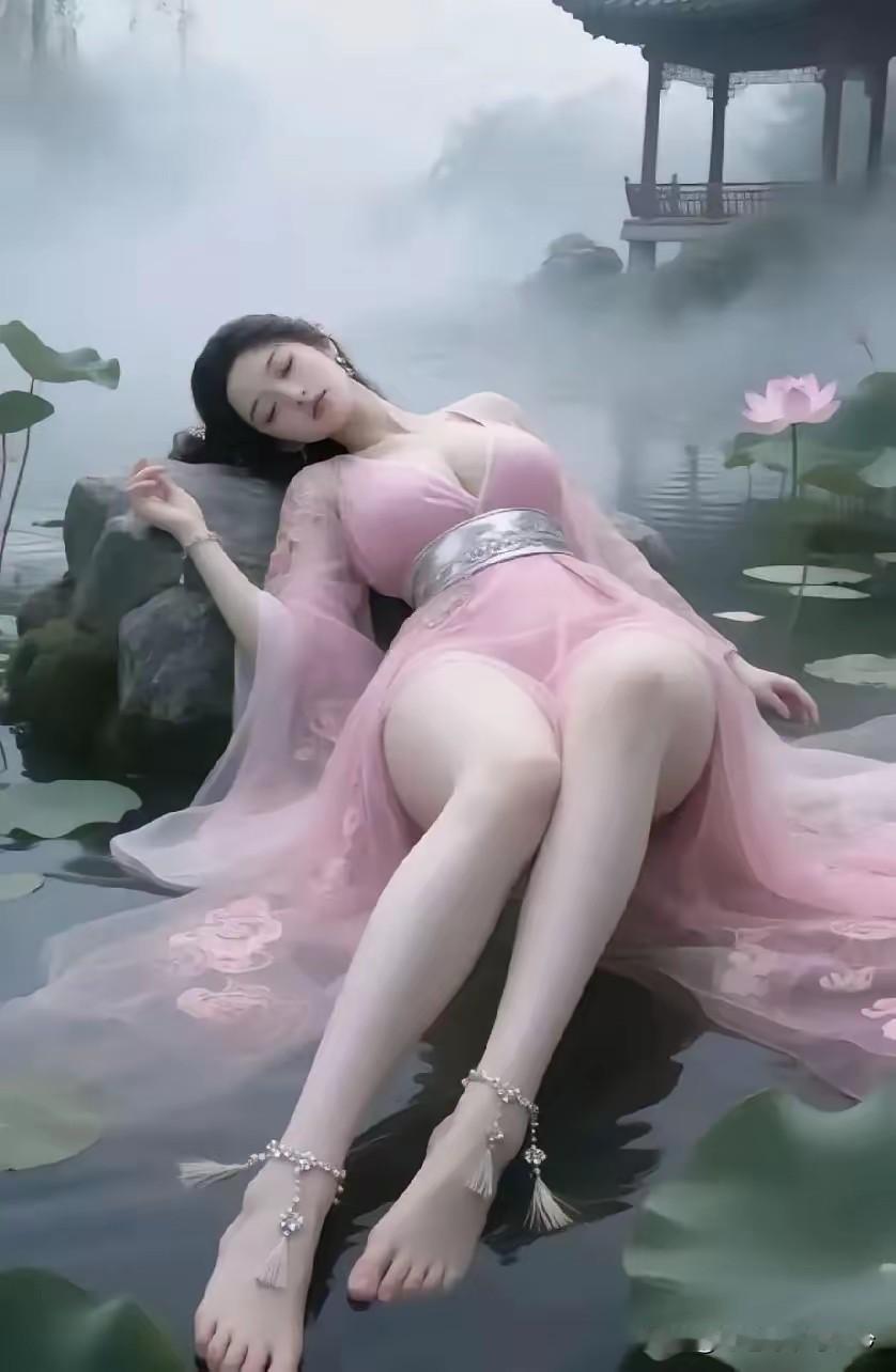 卧美吟 荷花池里躺美人, 好似仙女下凡尘。 雾气飘飘映身影, 粉裙晃晃水留痕。 靠着岩头胸儿挺, 泡在水边腿儿伸。 亭台荷香来相伴, 人间难见这般人。