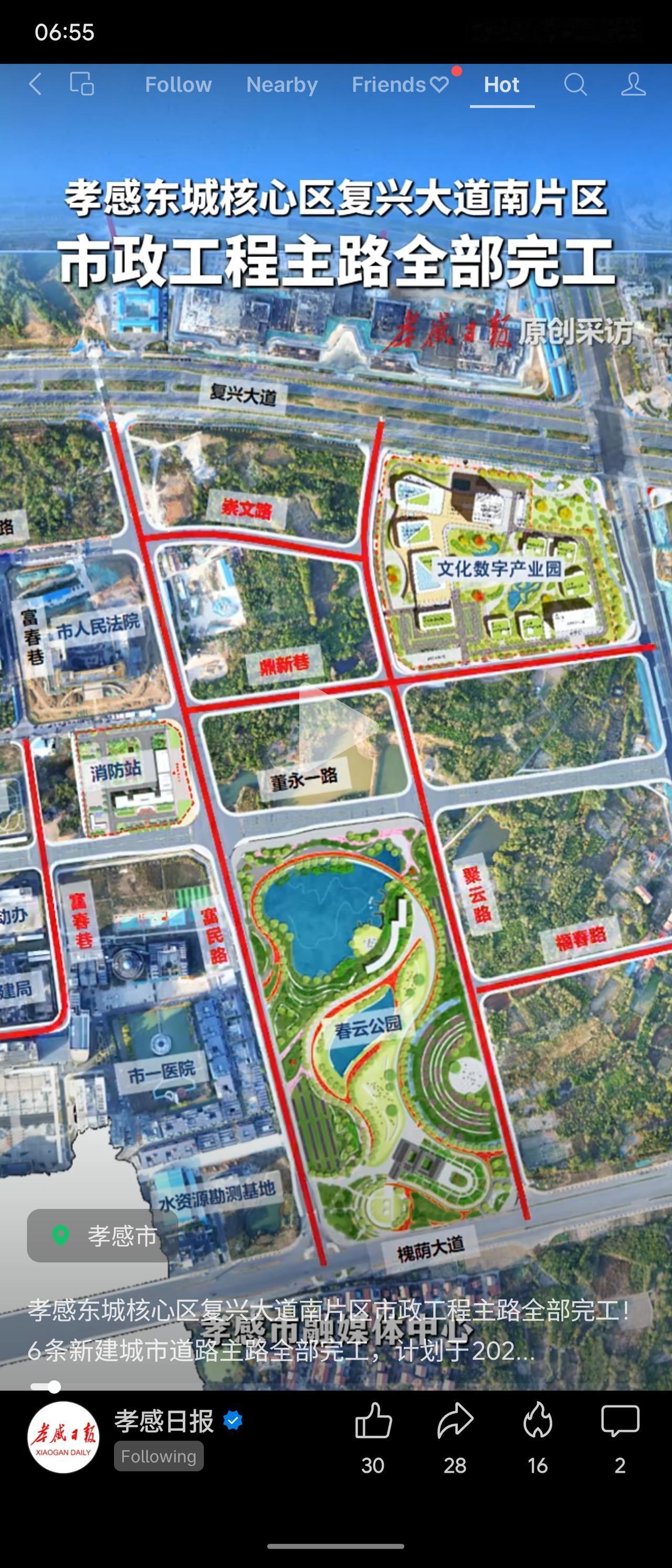 孝感东城核心区复兴大道南片区6条新建城市道路主路全部完工。路网完善不仅畅通了区域“毛细血管”,更为文化数字产业园、医院等配套发展铺平道路——城市生长,往往就从这些“最后一公里”的打通开始。