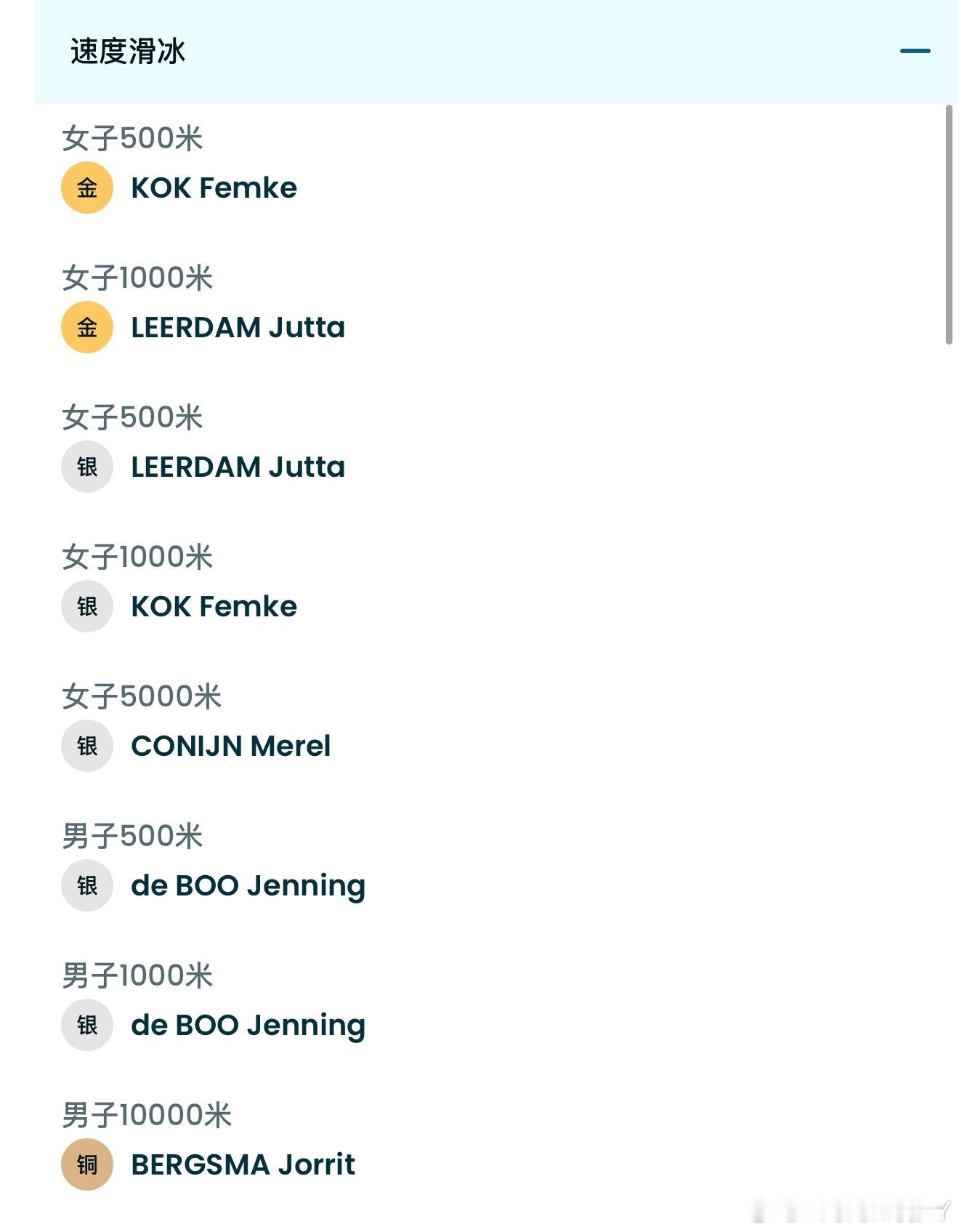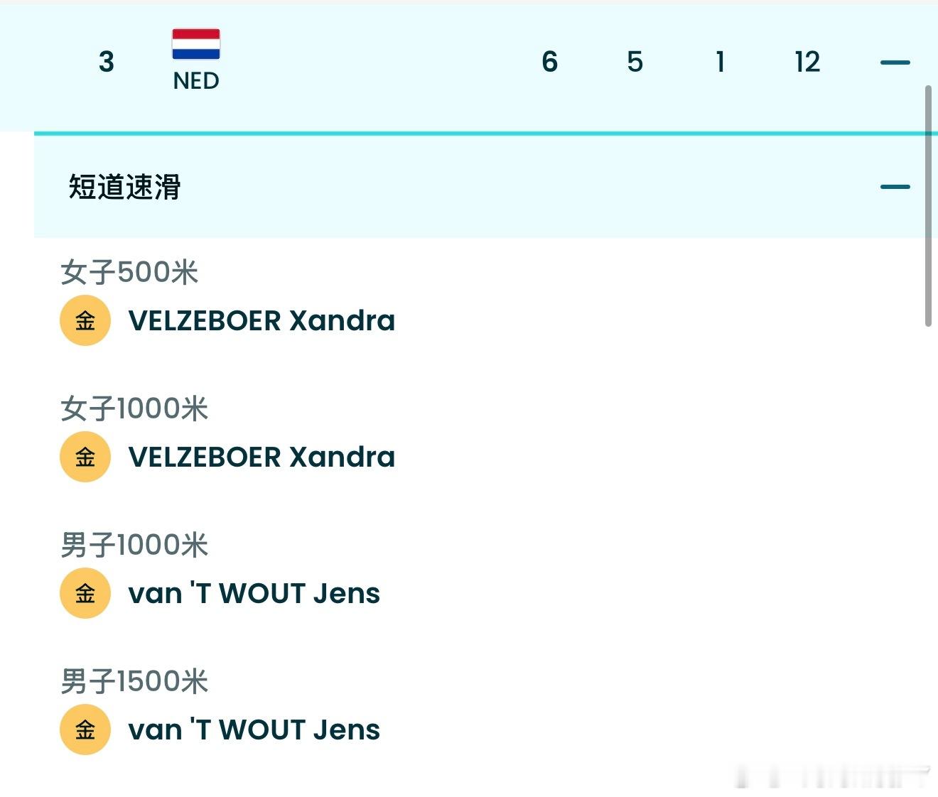 荷兰队现在所有的金牌以及12枚奖牌全部来自速度滑冰/短道速滑我算是知道外协看到中国跳水队是啥感觉了