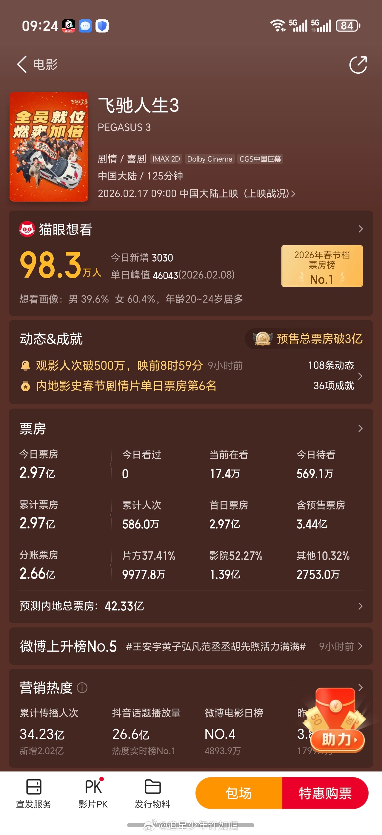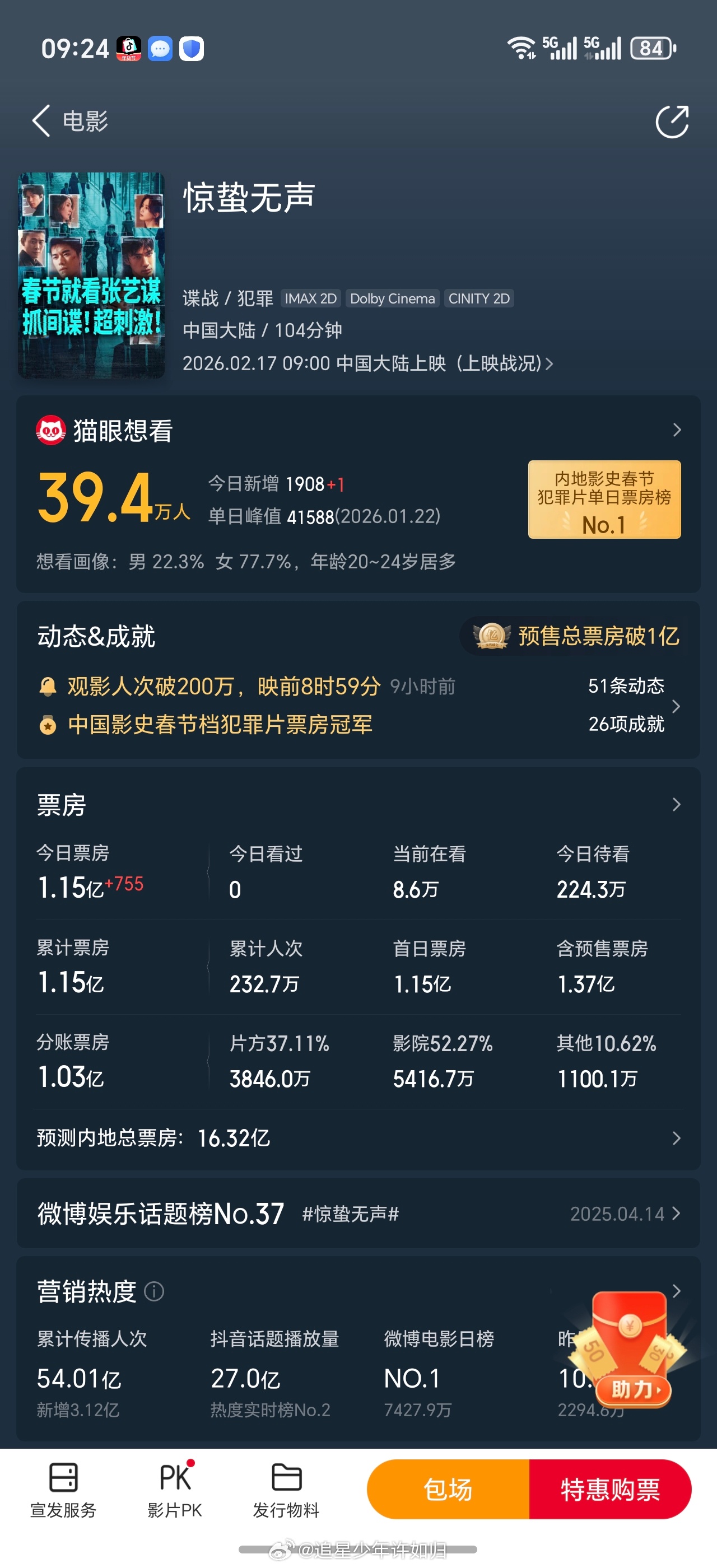 春节档电影大年初一开始拉开帷幕!陆陆续续的电影预测票房也发布了。飞驰人生 3 预测票房 42 亿惊蛰无声预测票房 16 亿熊出没 11 亿镖人 9 亿熊猫计划 4.8 亿星河入梦 2 亿你准备去看一部电影呢还了?