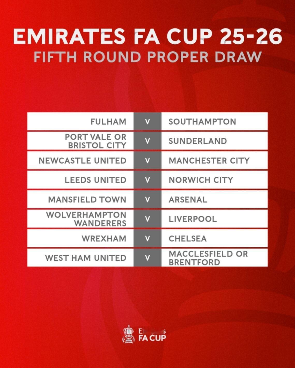 阿森纳足总杯又抽到上签,对阵英甲第13的曼斯菲尔德,进八强没有悬念。曼城纽卡提前相遇,枪手争冠路上少一劲敌。塔子哥控制好伤病,阿森纳进足总杯决赛是问题不大的。