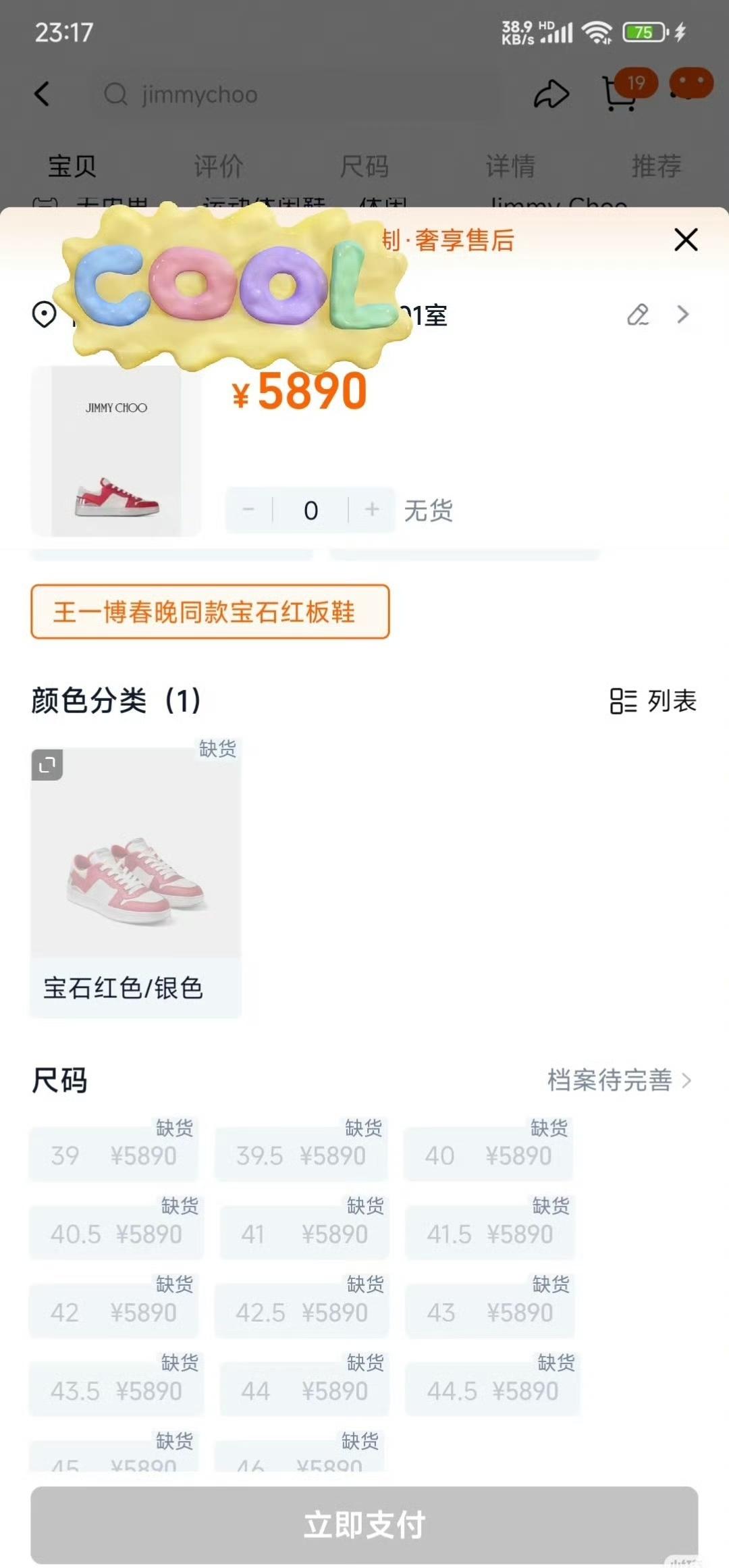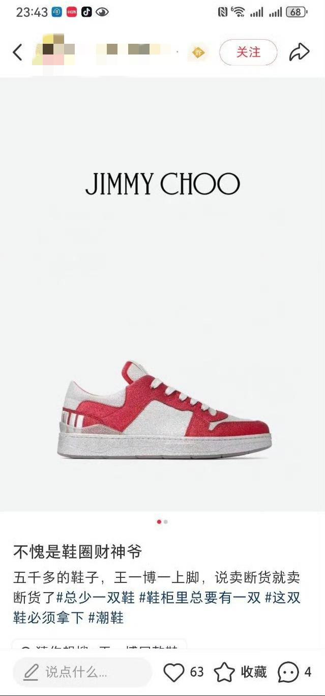 王一博,“鞋圈财神爷”名不虚传! 王一博春晚舞台《闪耀动起来》穿的JIMMY CHOO同款红宝石板鞋已断货……真的断货,所有码都没有了…… “五千多的鞋子,王一博一上脚,说卖断货就断货了”[捂脸]。王一博,就是这么牛,各方面全方位无短板的牛! 王一博郭富城炸场 王一博闪耀动起来播放破亿