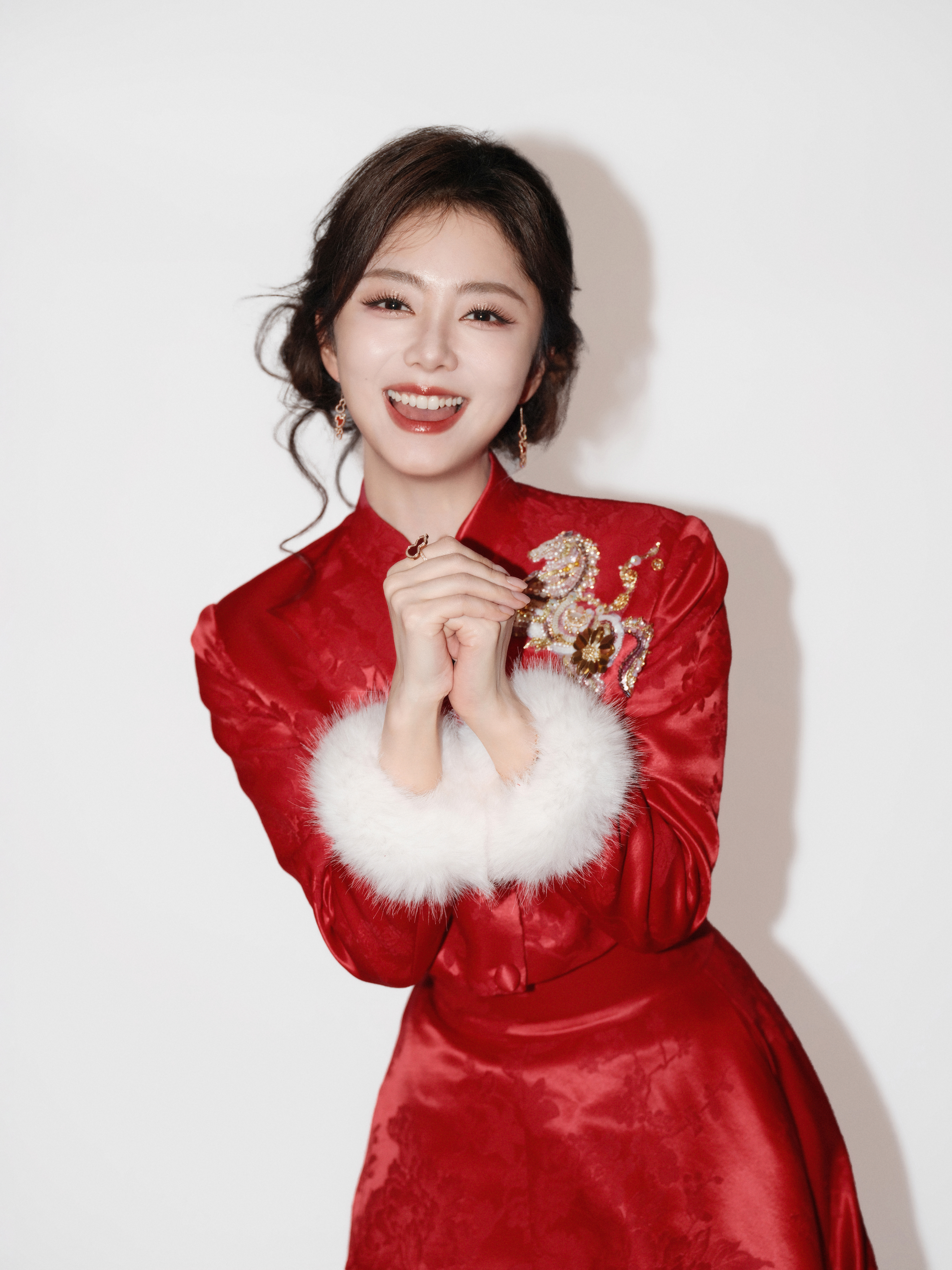 笑起来像年画里的小福娃,唱起来又稳又清亮。把烟火气、年味、非遗元素都揉进了自己的气质里。