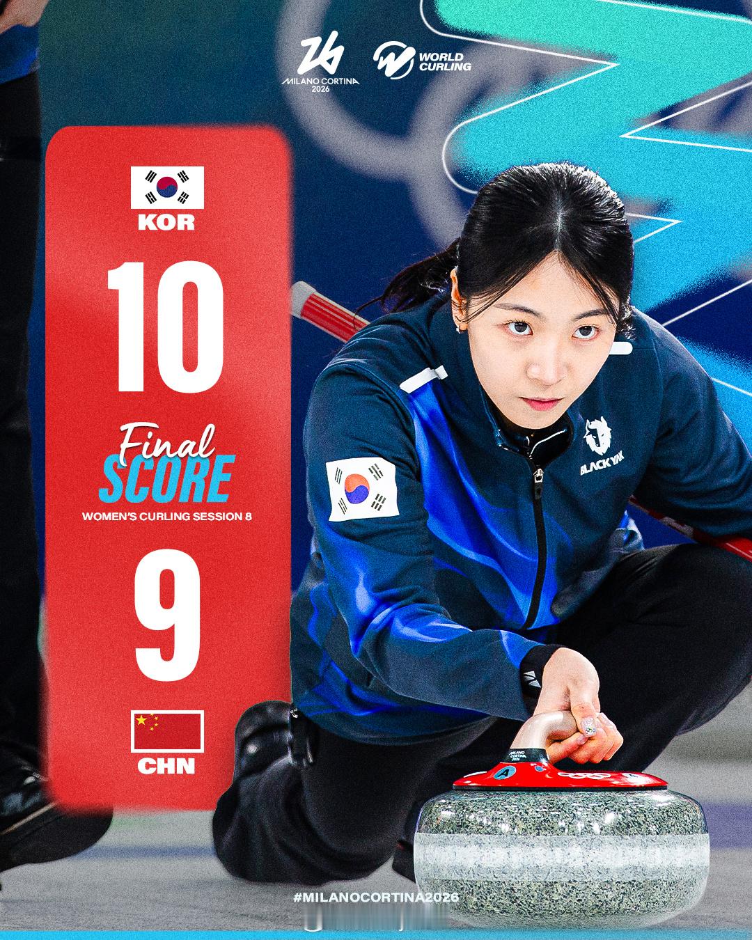 米兰冬奥会女子冰壶循环赛,中国队9-10韩国队,目前2胜4负岌岌可危