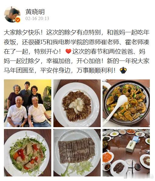黄晓明带爸妈三亚过年,10到年夜菜非常的丰盛,不用自己做饭直接下馆子还是非常不错的,现在明星都流行度假旅行过年,不用自己做饭啥都不用管,还可以玩的开开心心的