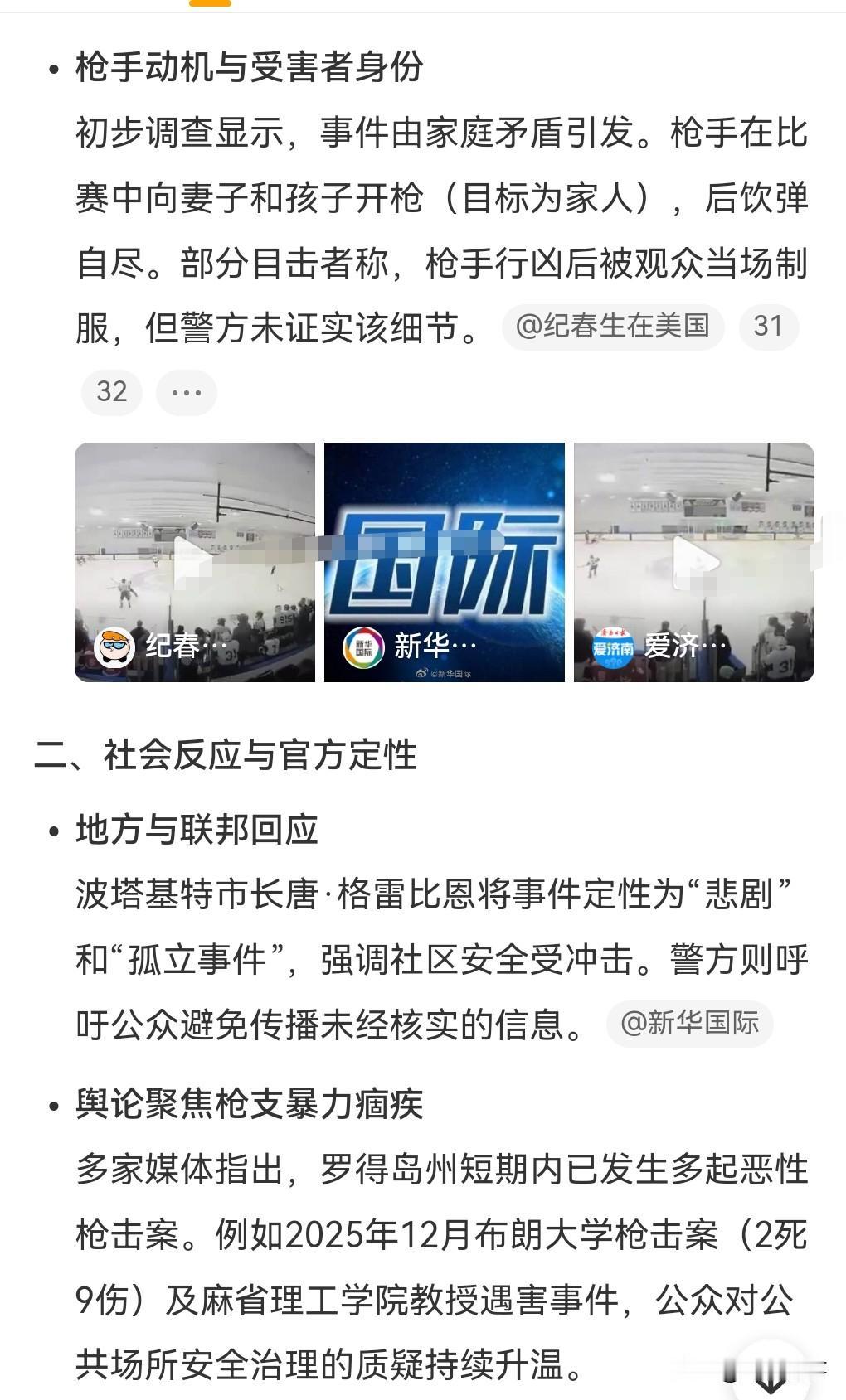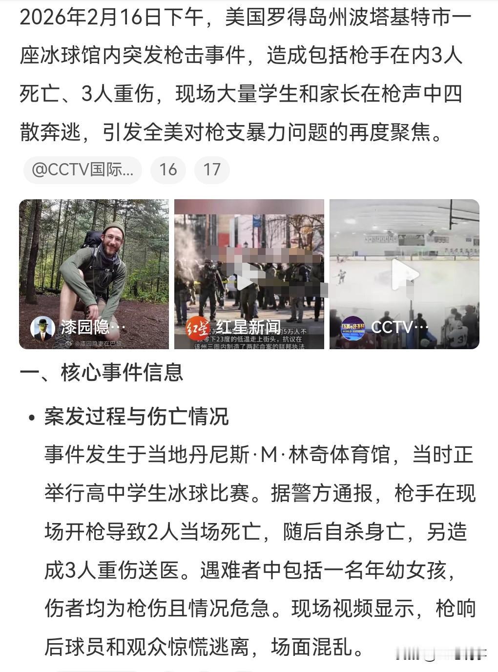 这就是不禁枪的后果。 2月16日,美国一冰球比赛发生枪击,包括凶手在内共3死3