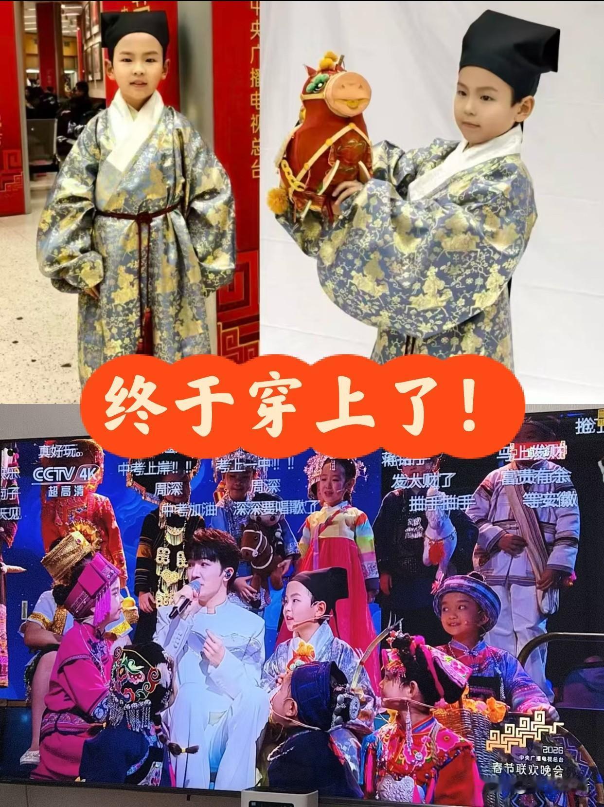 热泪盈眶了,小明终于穿上了属于他的衣服, 明制复原道袍,这才是属于我们的传统衣裳呀。 此前彩排娃穿的还是蜈蚣扣唐装,大家又急又憾,纷纷发声建议。没想到心声被听见、被尊重,央视最终换上正统汉服,扬眉老师的设计超用心,织金纹样藏满美好祝福。 更感动的是,各少数民族小朋友也换上复原民族服饰,质感拉满。拒绝影楼装,让传统服饰真正回归,这才是文化传承该有的样子。马年春晚这份用心,真的太赞了! 时隔300多年啊,太不容易了,小明终于穿上了属于他的衣服!【tips: 小明源于大明王朝】
