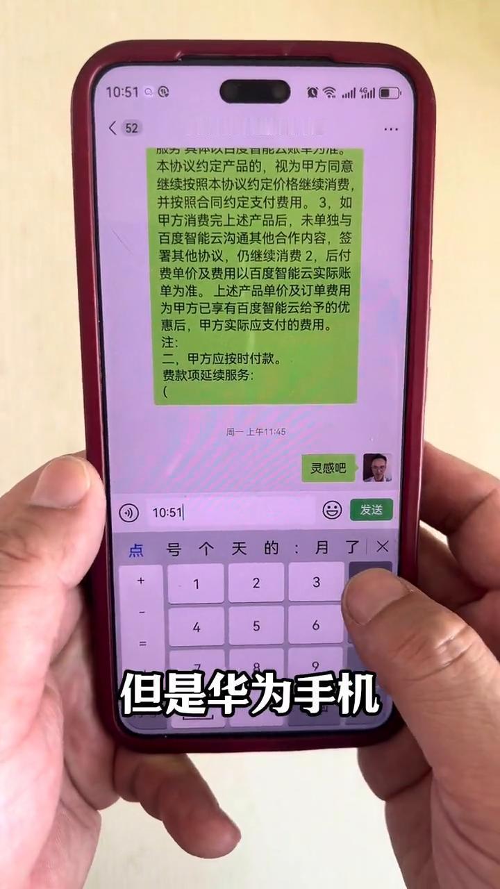 华为手机超好用的功能你绝对不知道。 华为手机上有一个你可能不知道但是绝对好用的功能。如果想把时间发送给别人,要切换键盘一个一个的去打这种符号,数字对不对? 但是华为手机有一个非常实用的功能,直接在上方打时间两个字,时间打出来之后键盘的右上角就会出现一个时间,直接选择发送就可以了。而且它也一样的,选择打日期,这里也会出现当天的日期,点击一下自动的发给对方,非常方便。 这个功能其他手机都没有的,大家可以去试一下。