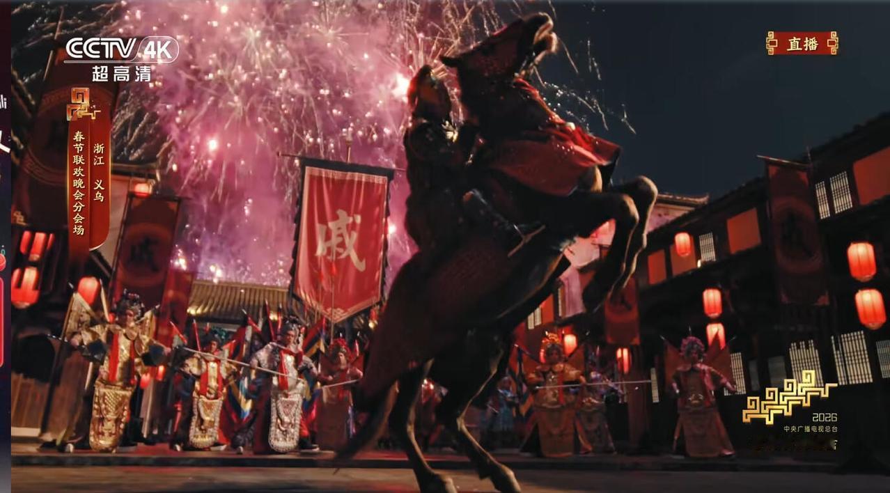义乌分会场一出来,看到戚家军的帅旗,特别是吴樾驾驭的那匹马立起来这个镜头,整个人热血沸腾。 明代就在抗日,义乌兵是主力,义乌兵戚家军主力,那里械斗太猛,民风剽悍。海波平,民安定,太平年。我看这个节目的时候就觉得在做阅读理解:抗倭、一个不能少、世界大同。 义乌分会场的导演真的有水平也有审美,不管是画面构图,转场的过度,音乐的变换,都很棒!! 春晚 戚继光文化