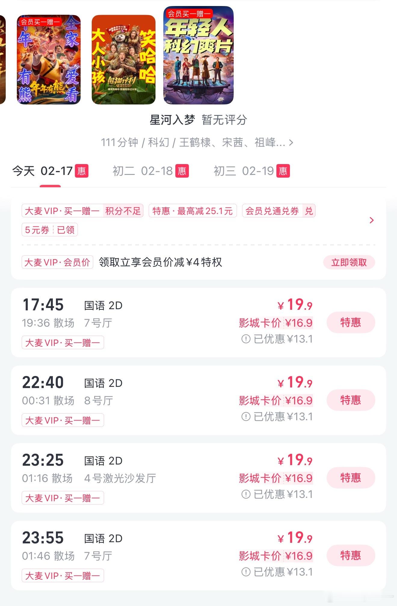 星河的场次太差了5点45正是吃饭的时候