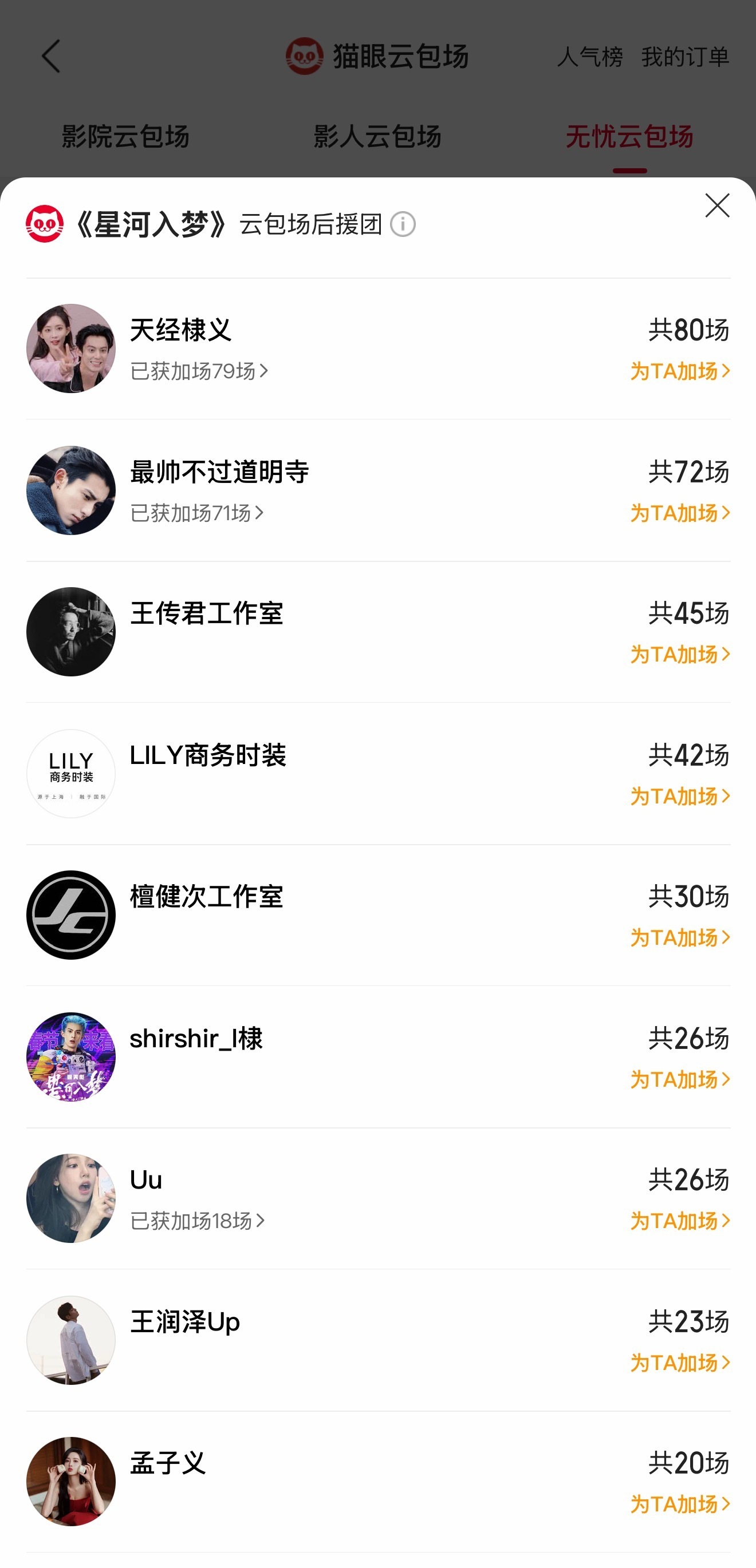 檀健次连包30场支持星河入梦 据猫眼专业版云包场显示,檀健次工作室连包30场支持电影《星河入梦》。也期待他与韩延导演合作的《空枪》春节档马上有戏