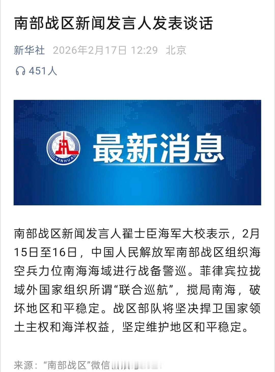 解放军位南海海域进行战备警巡菲律宾专门挑这个时候拉拢域外组织搞联合巡航……