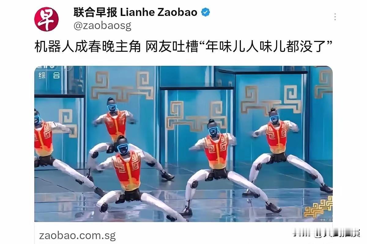 新春佳节之际,联合早报竟然专门刊文讽刺我们的春晚! 大过年的,联合早报专门发文挑刺,说春晚机器人节目多,没人味儿、还恐怖。 这话听着就酸,完全是带着偏见看中国。 今年马年春晚,机器人节目多,是展示中国科技进步。 机器人能表演,能和人互动,这是国家实力的体现,值得骄傲。 机器人本来就是服务于人,用在舞台上好看,用在生产上提效,用在国防上更能保家卫国。 真要是有人敢和中国动手,这些技术就是解放军的强大助力。 有网友说,对中国有敌意的势力,看到我们发展快,心里害怕,才会到处乱喷。 他们越酸,越说明我们做对了。 春晚好不好,老百姓心里最清楚。 笔者认为,我们过我们的新年,强我们的国家,不用管外人怎么说。 中国稳步向前,谁也拦不住! 对此,你怎么看呢?