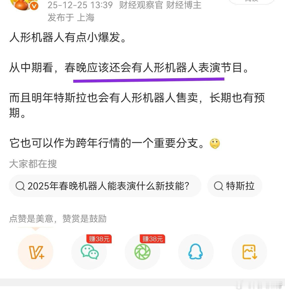 春晚的人形机器人果然很多!春节前一个月,我感觉人形机器人只会更热,节前最后一天,买了个人形机器人和飞行汽车两者兼备的低位股。