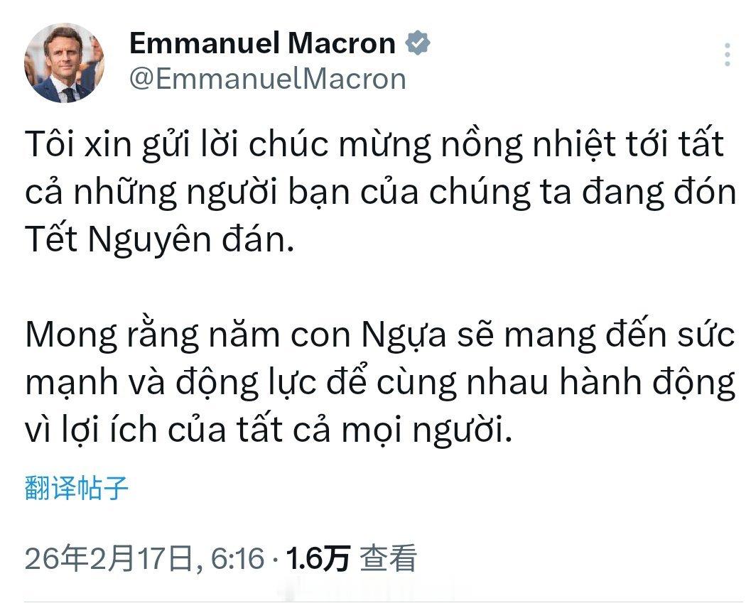 海外新鲜事 马克龙发农历新年祝福 法国总统马克龙用法、中、越、韩语发推: